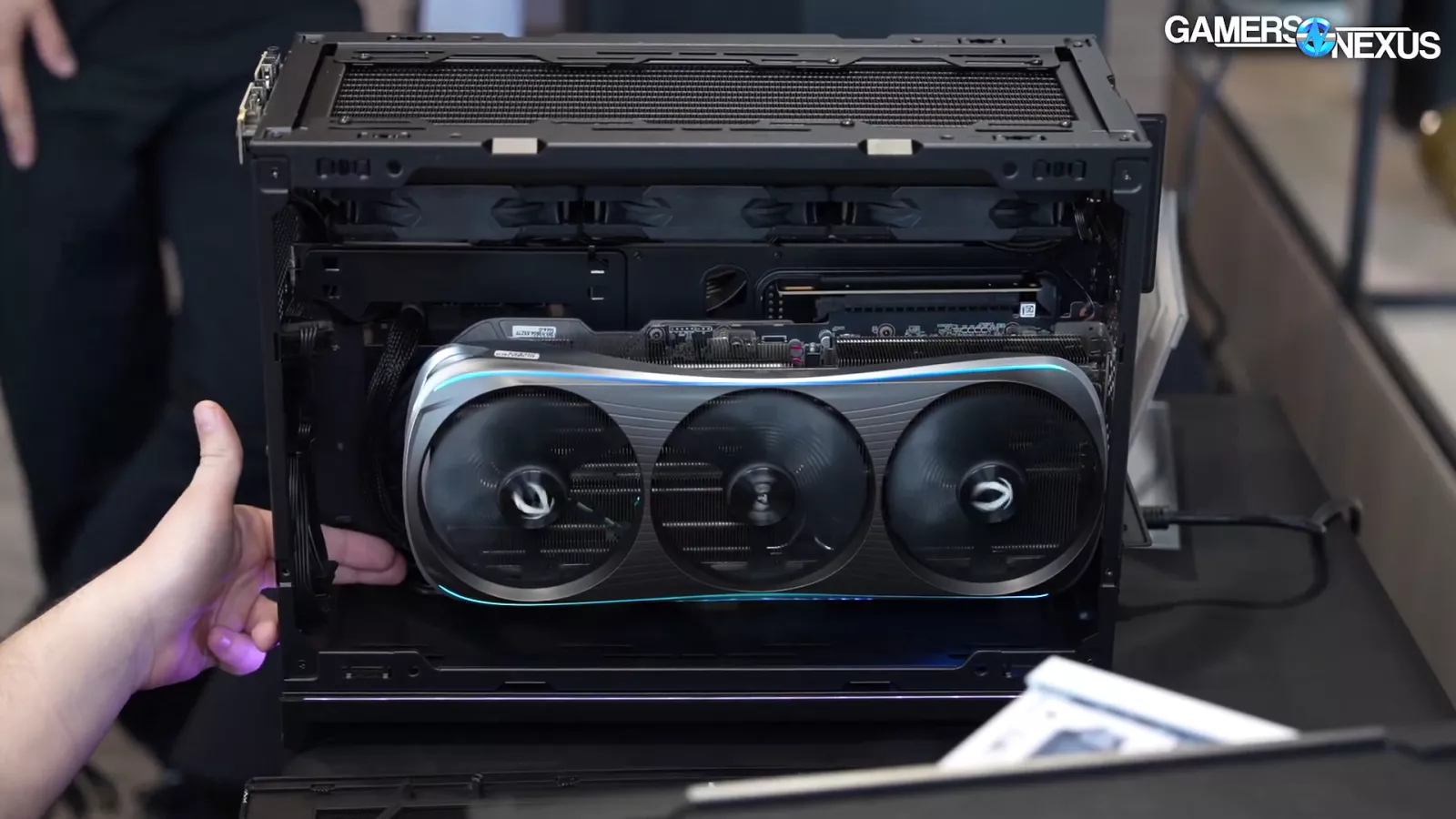 The thing that jumps out to us about this case is its canted tray for its 2 bottom fans, which are reverse blade ones that act as intake.