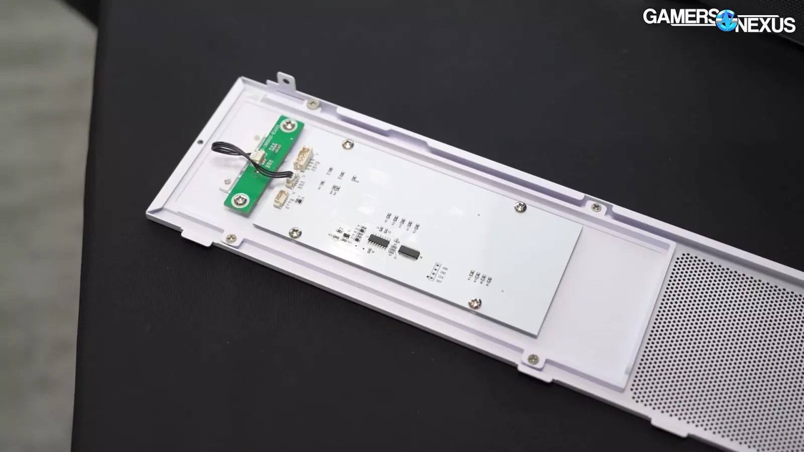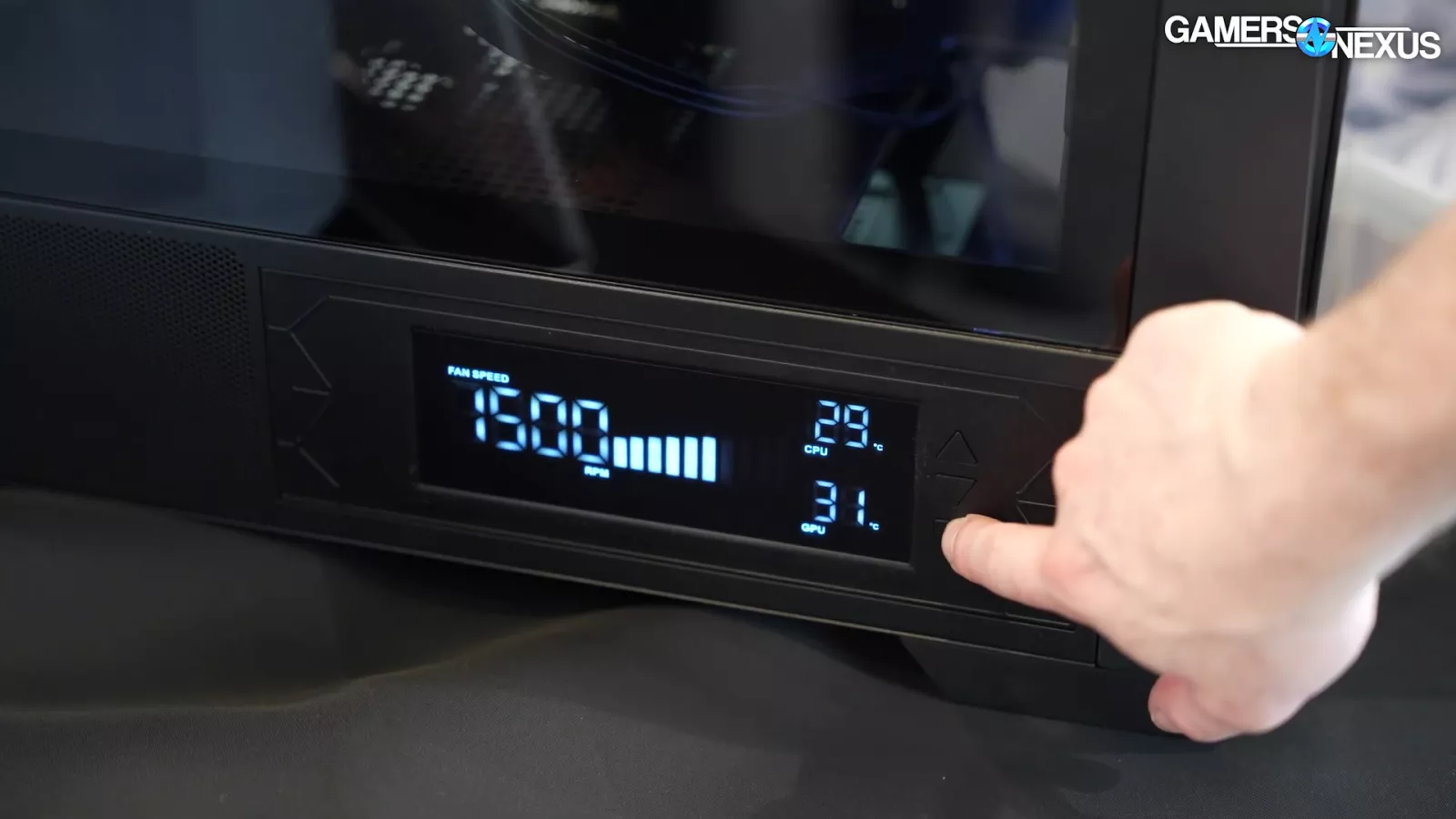 Moving on to the Air 2000, we saw a black one with a glass front and a white one with a mesh front. The case has a digital display panel on the side. It tells you the fan speeds but also provides controls as well. Each button press up or down targets 10% increments in control. There’s also a button that defaults to the motherboard’s controls. Looking at the backside of the display panel, it’s just one big PCB coupled with a wire that connects to the fan hub. The upside to this approach is that no software is required. This has been done before by a couple of companies, but it isn’t that common. Being able to control fan speed externally is a nice feature, especially if it doesn’t require software.