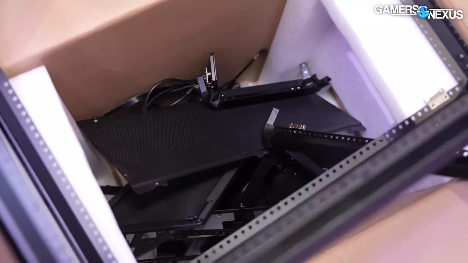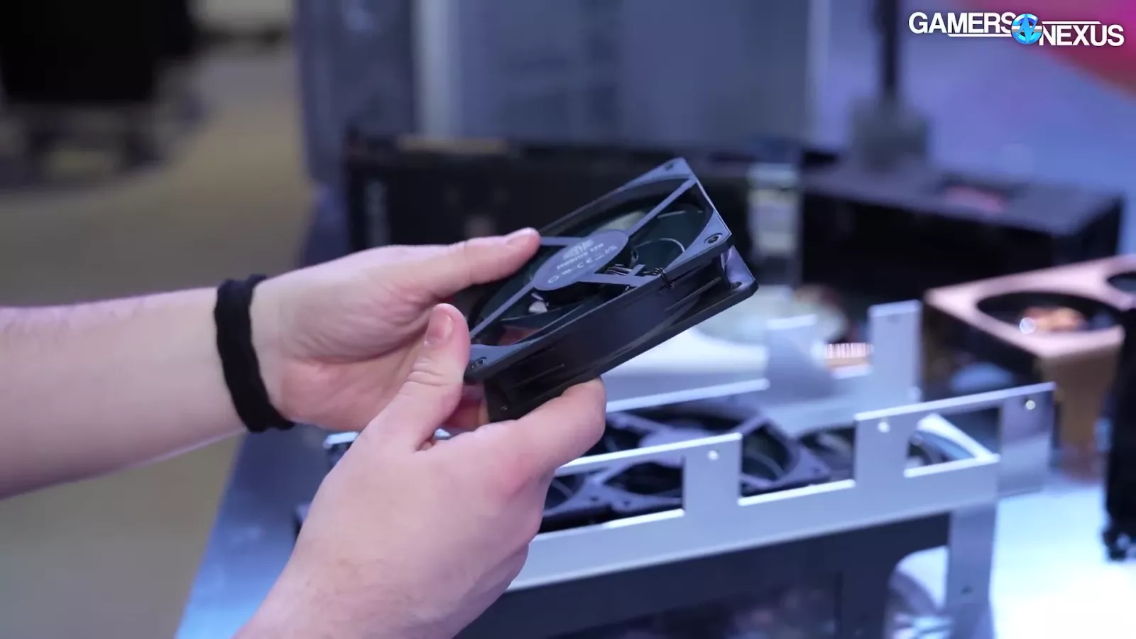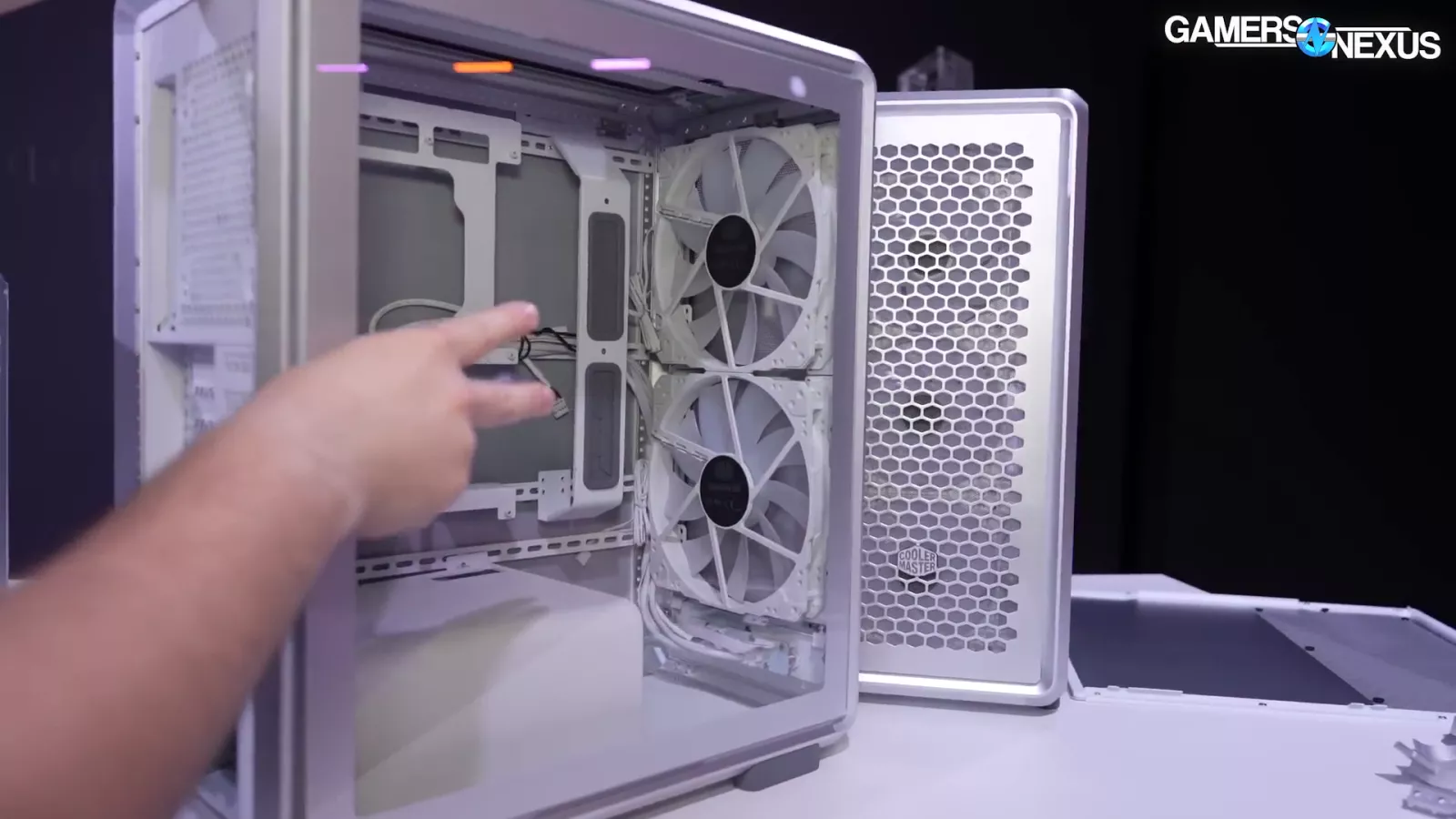 The case in the image above, which goes by "Cooling X,” and uses the company’s new MF frame system. If you look at the corner, you can see the individual columns. At Computex, we saw it as a pre-built system.