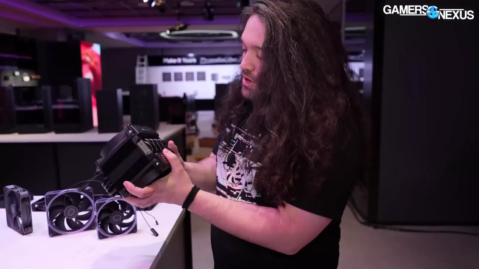 Cooler Master claims that, in terms of cooling, it performs similar to the 4-fan Astral solution at lower noise levels, but we don’t have those numbers.