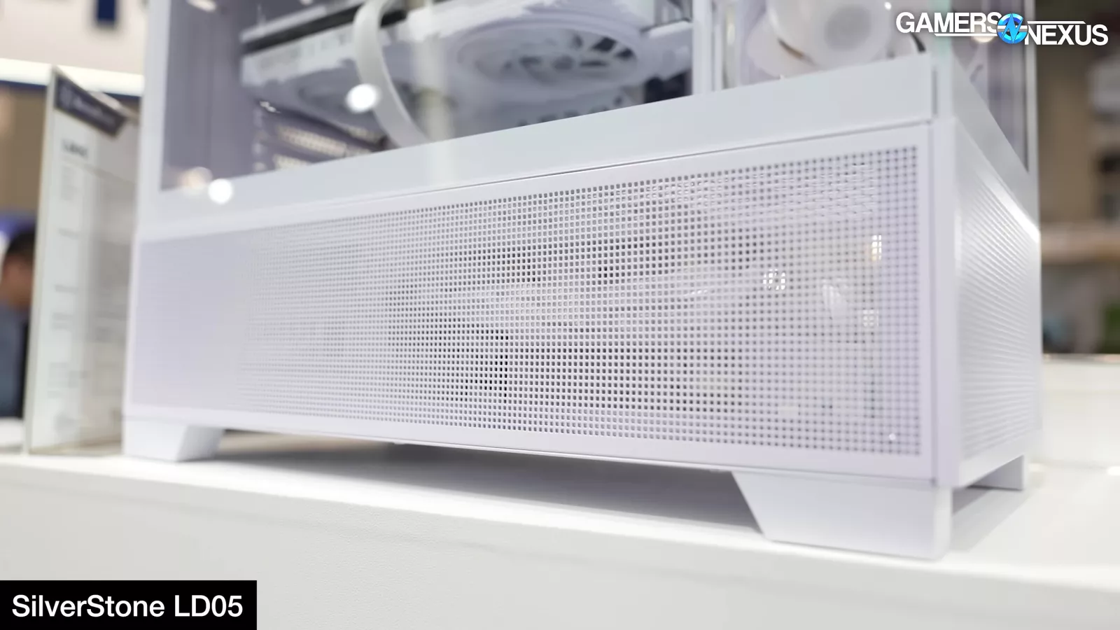 The company also had more contemporary cases, like the LD05 fishtank case. The LD05 has heavily ventilated lower panels and a ventilated side panel to get air into the system. This is more of a traditional design by today’s standards. SilverStone plans to ship it with 3x 120 ARGB fans included and wants to hit $100, depending on tariffs, for a budget-focused airflow case with the glass look to it.