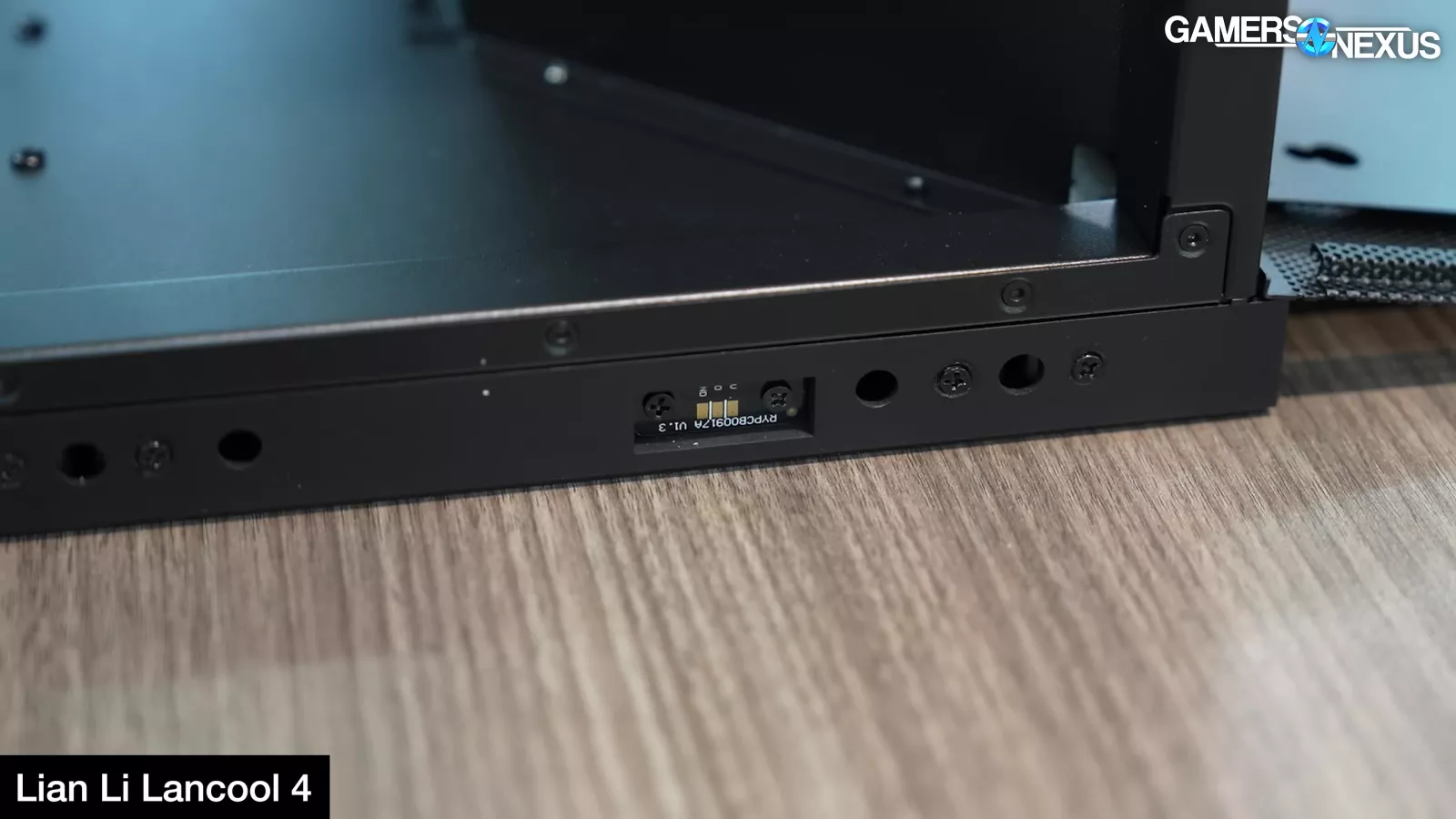 The Lancool 4 is more complicated and is entirely new tooling. The case still uses the 4-door approach that the Lancool series has become known for, so the left side features a large sheet of glass resting on top of a mesh plate that opens separately. The mesh plate allows intake through fans mounted in the bottom of the case (or just the GPU), with lower panel side mounting available for 120mm fans. The panels open with a button release mechanism to allow them to separately lock. The right side also features glass and steel, with a clear line of sight through the other side of the front of the case. A cable cover door can be screwed down to hide the cable management.