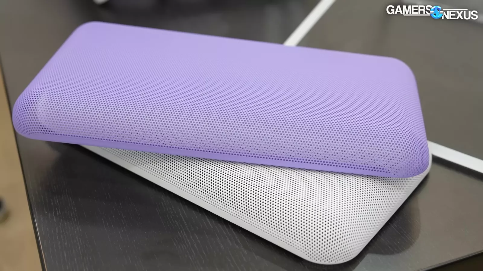 Another unit we looked at used lower porosity mesh on the edges, which is what the factory Hyte worked with said was the limit of what it could do. Hyte couldn’t accept this design, however, as they were targeting over 40% porosity. Teller says the X50’s final design ended up having about 45% porosity with 2mm holes and 3mm spacing.