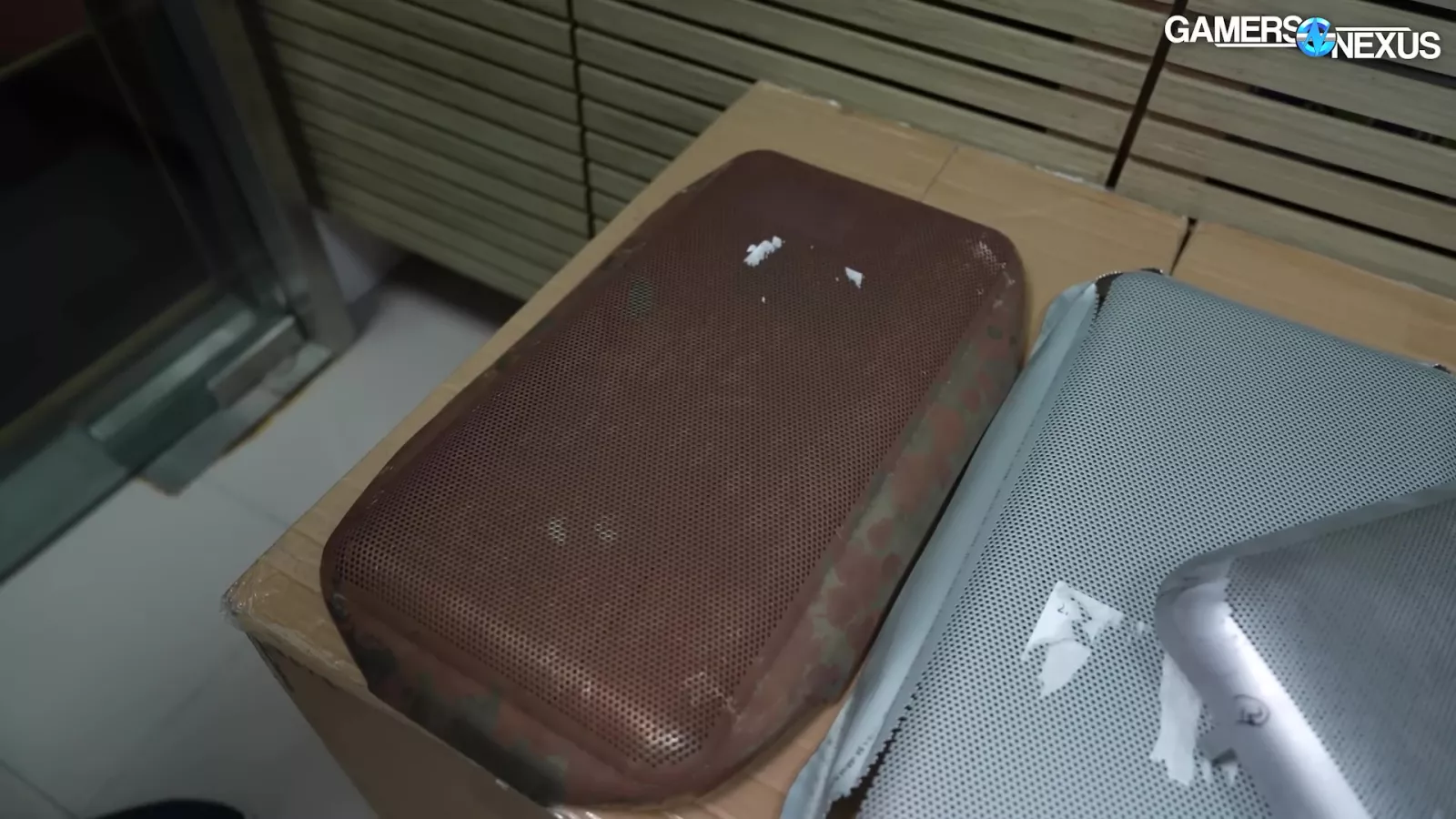 Another one we looked at was all rusted, which was due to the fact that Hyte used a softer metal with less nickel and chromium to reduce the chance of it tearing during the manufacturing process. Like we said up above, however, this introduces oxidation, which causes rust. The panel in the picture above is only a week old despite looking significantly older than that.