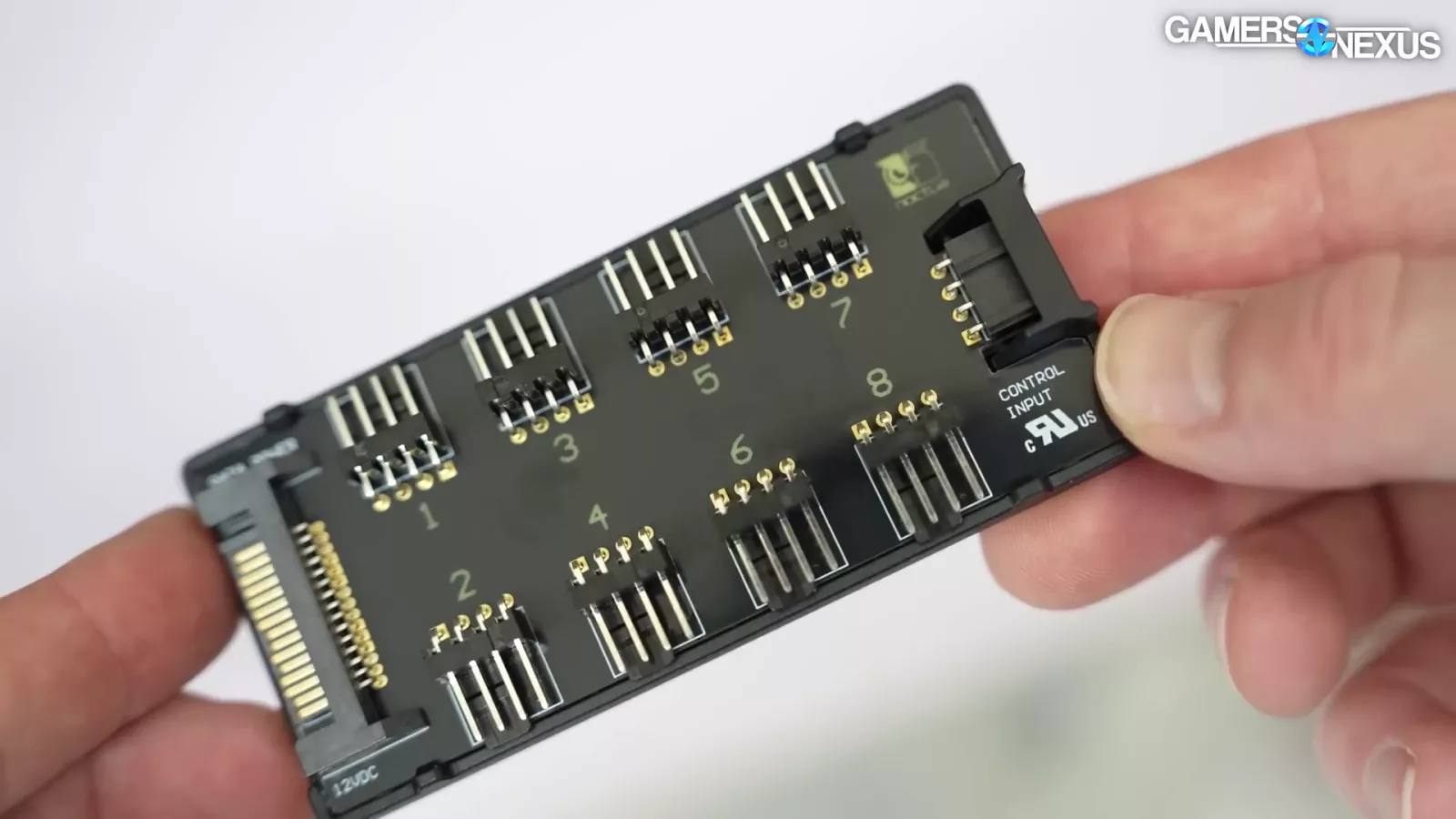 Noctua is also probably going to include the fan hub pictured above. There’s no ARGB support, which makes sense given their fans don’t have RGB LEDs. It’s simply an 8 PWM fan connector. The PCB has SATA power on one side. The case itself will ship with 6 fans, which is the same amount of fans that the original Flux Pro offered.