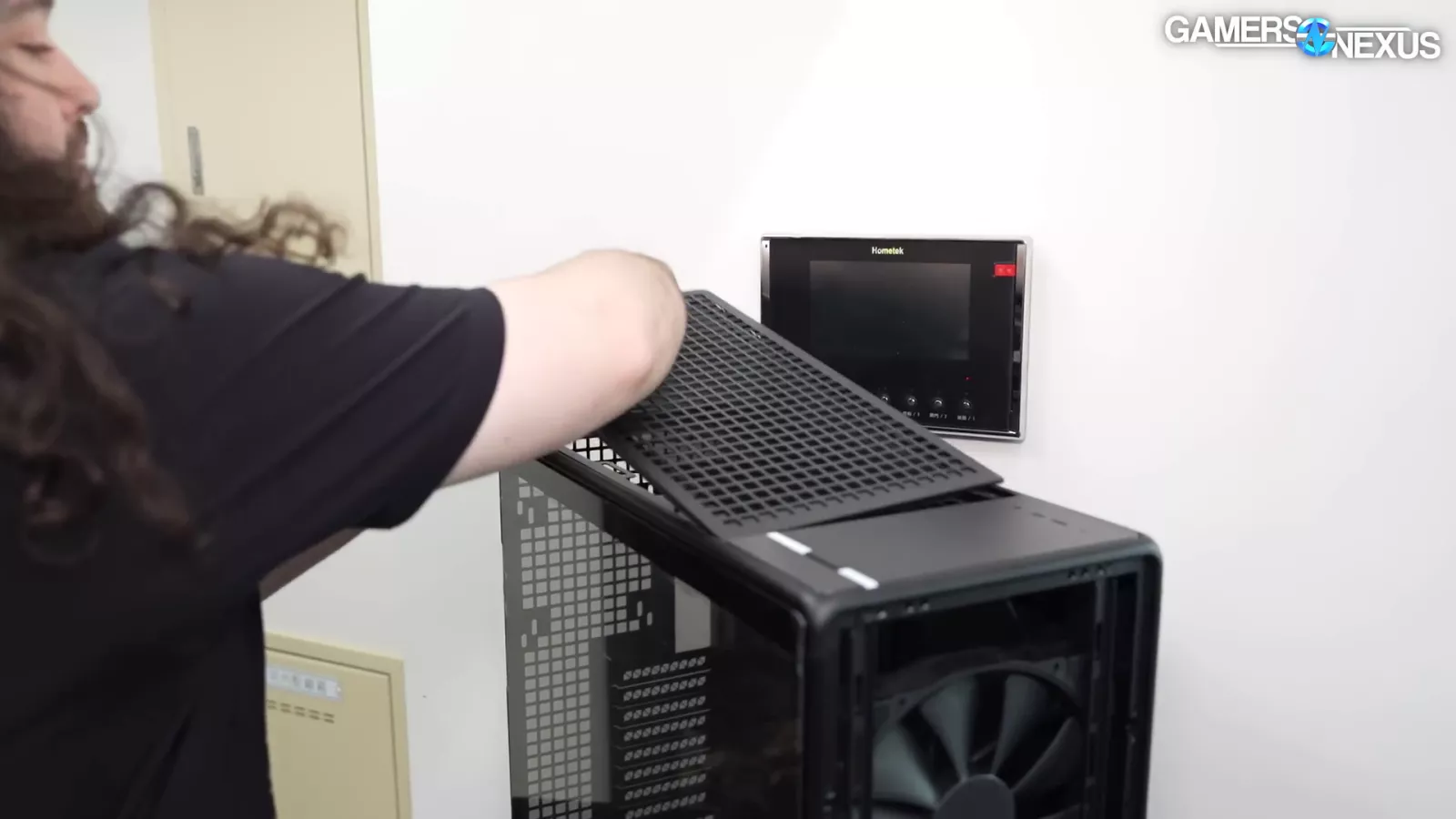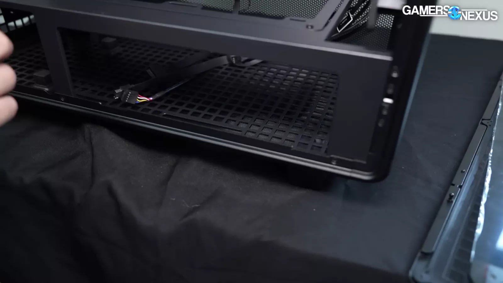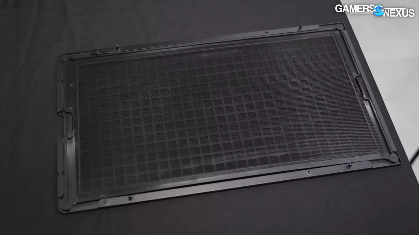 Looking at the top panel, it uses massive holes in its design coupled with a dust filter. In some ways, this is traditional. The upside is that the actual panel itself isn’t doing a whole lot other than just providing the structure, which means it’s not really getting in the way of airflow because of how huge the holes are. It’s really going to come down to the dust filter for how much air can get through. If you’re going to use the top panel for exhaust, we would recommend pulling the dust filter off because it’s not stopping a whole lot of dust.