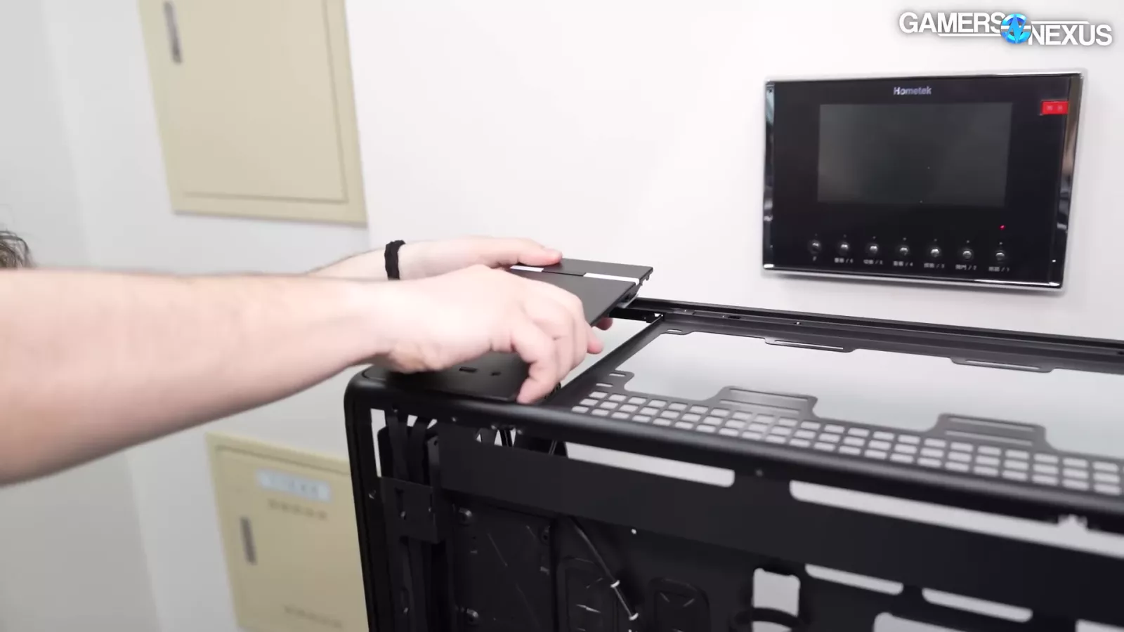 The last feature worth pointing out is that the front top panel with the front IO pops out. This provides access to the top, which is good for open-loop access and getting a radiator in and out.