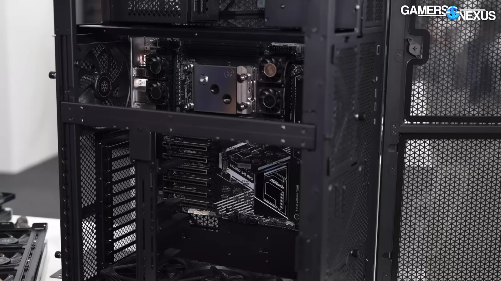 Silverstone is technically wrapping 4 sides of it. It’s made by first extruding a gigantic sheet of aluminum, and then the company uses a press multiple times to get its shape. There’s also some manual fine tuning at the end of the process to get it all into position. We wanted to call attention to the really interesting manufacturing the case poses. They’ve also partnered with EK Water Blocks on it…