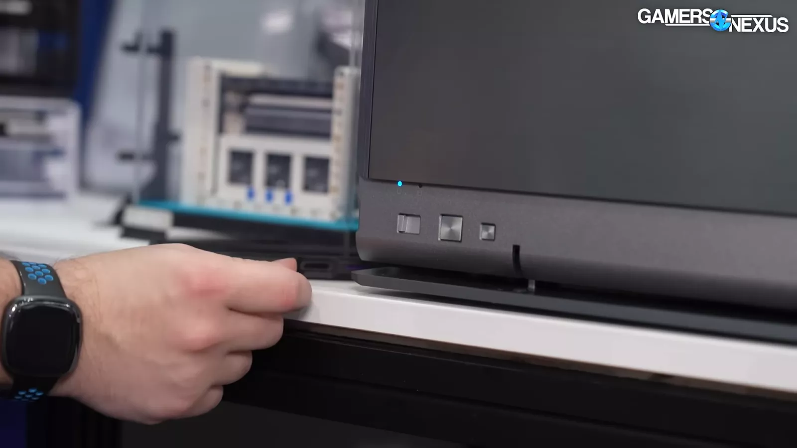 The front of the chassis also has a nice opening mechanism. It also has a cover for the hard drive activity LED.