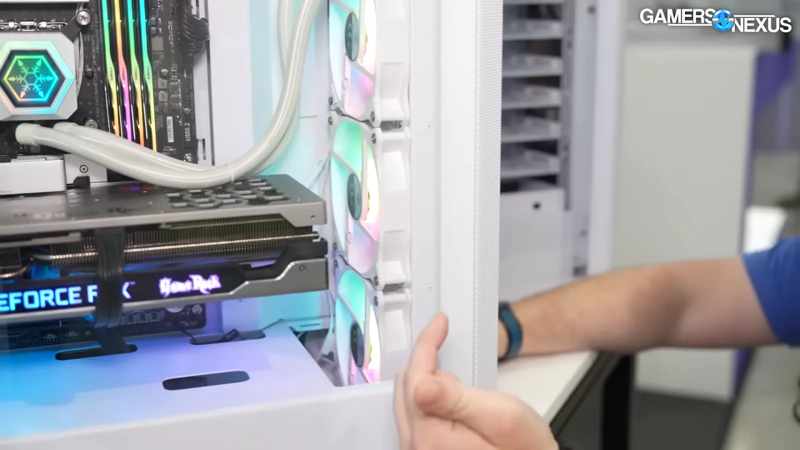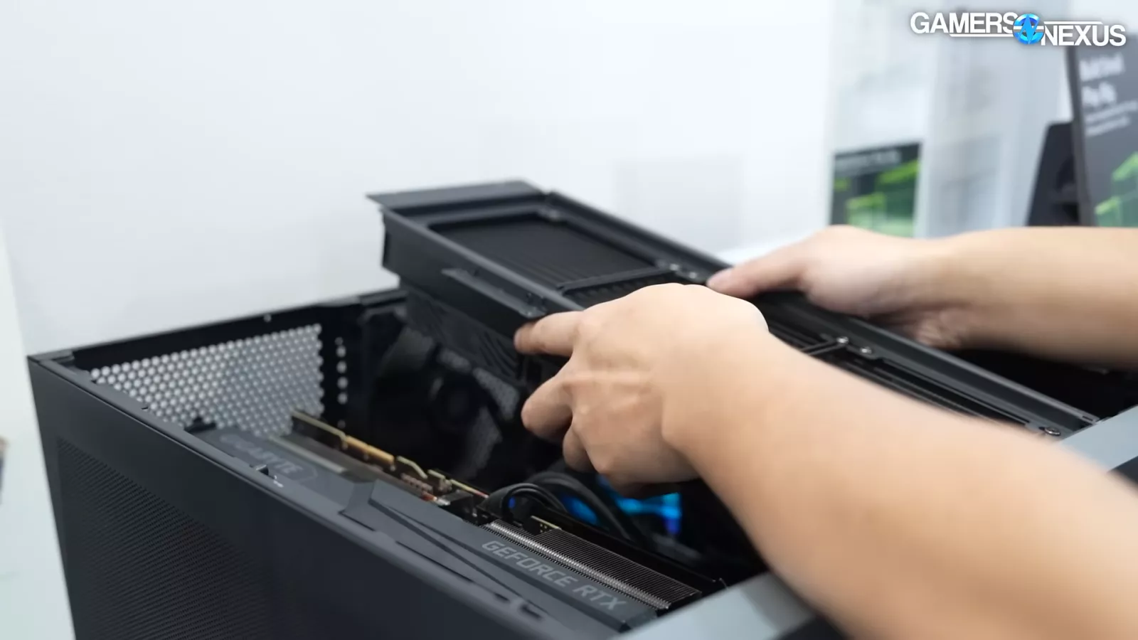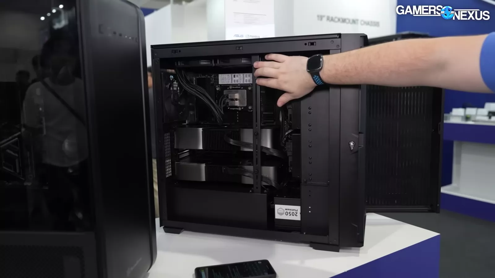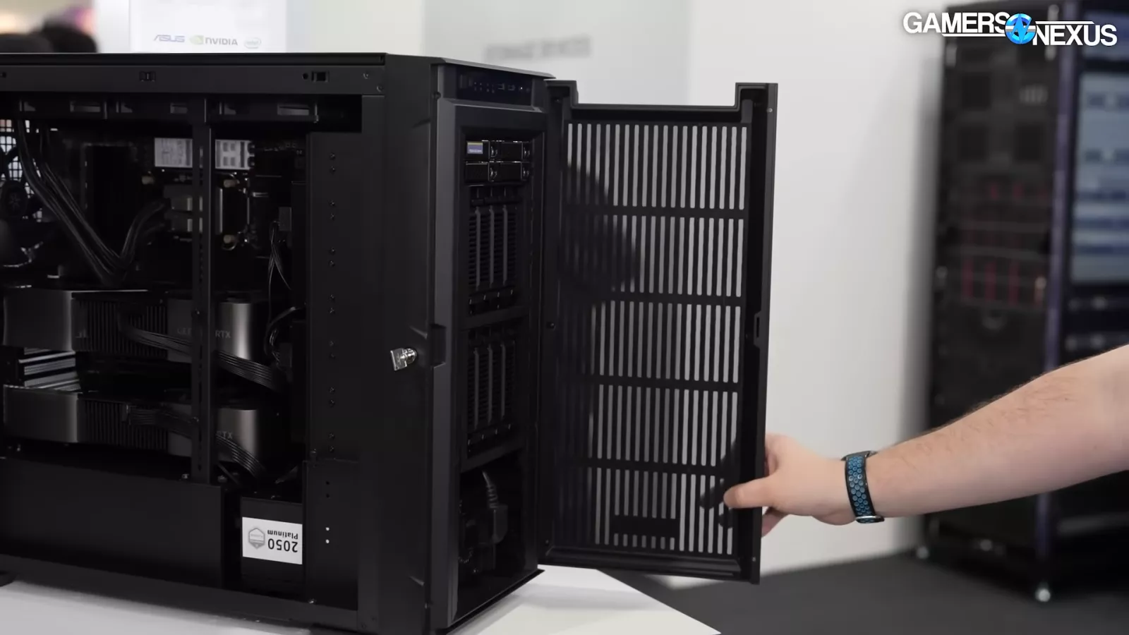 At the show, we saw the case with a 360mm radiator that’s able to slide into place and hook into the chassis. It also has latches that secure it to the case.
