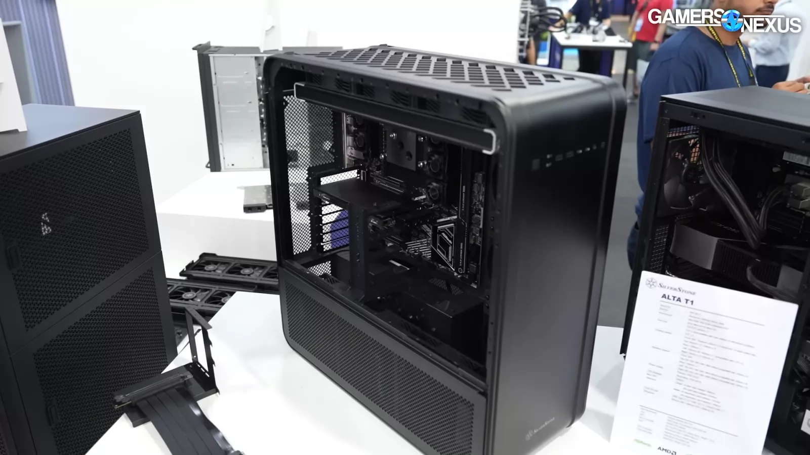 Silverstone often has some of the most unique and mechanically advanced cases at Computex. We most liked the Alta D1 for its modularity and ability to swap components all around the case with a simple rails system. Silverstone also had some new budget PC cases, like a $60 Fara 515X, $100 Fara 514X airflow case, and more. Let’s dive in.
