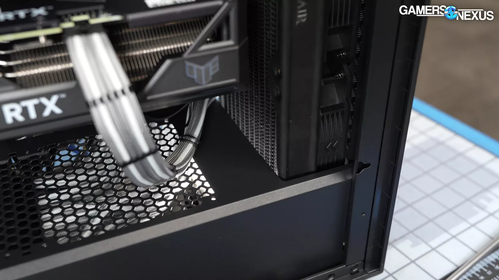 On the other hand, the 514X's front panel is almost entirely metal, including the snaps, and a GPU support is included with the case. The snaps are good, and although a GPU support in that location isn’t the most helpful, it doesn't hurt.