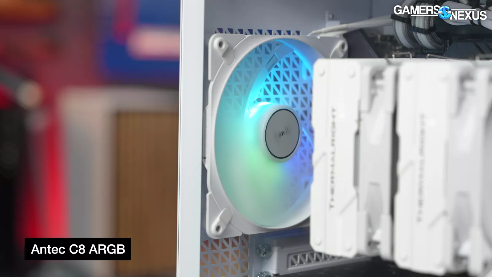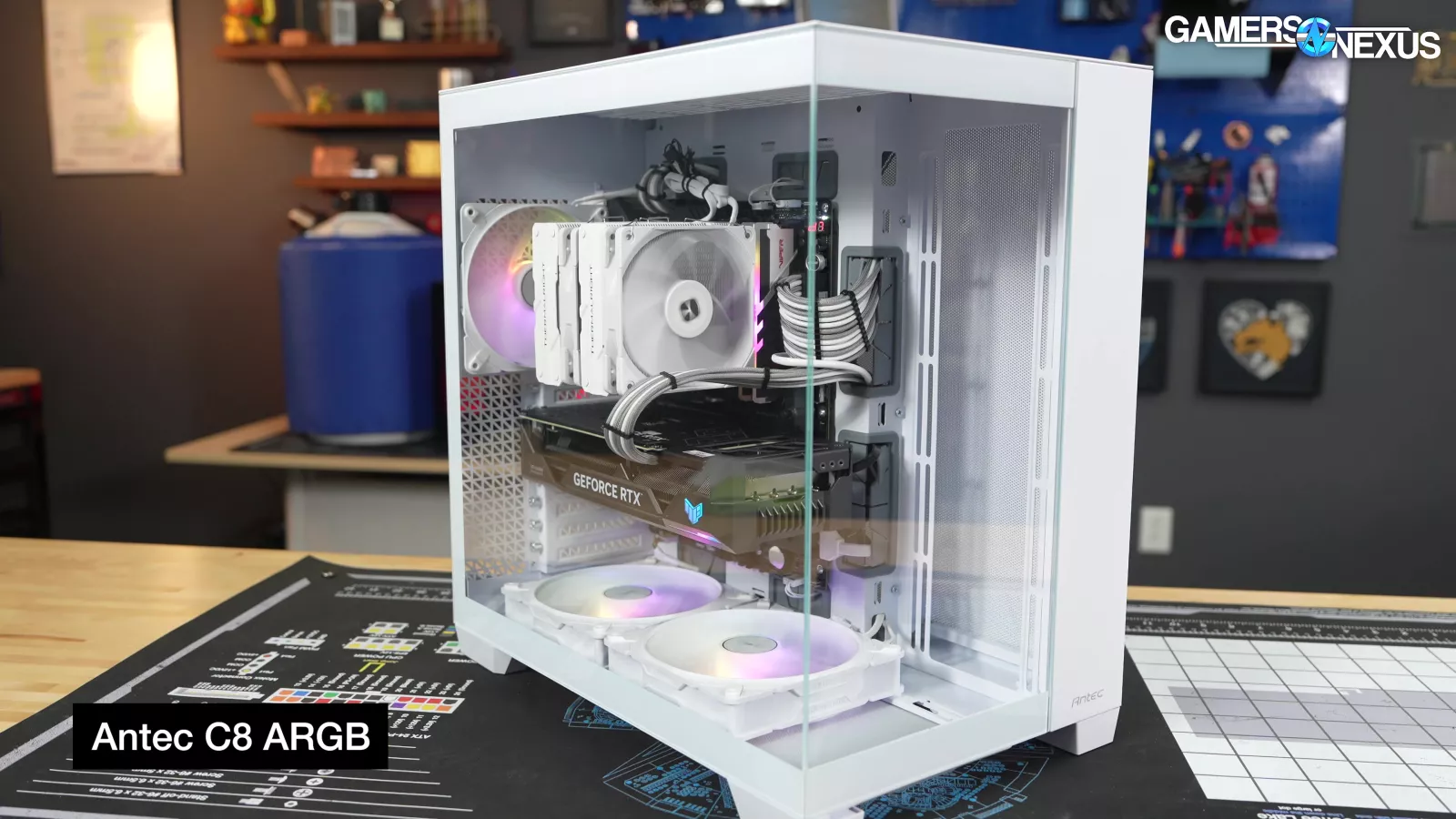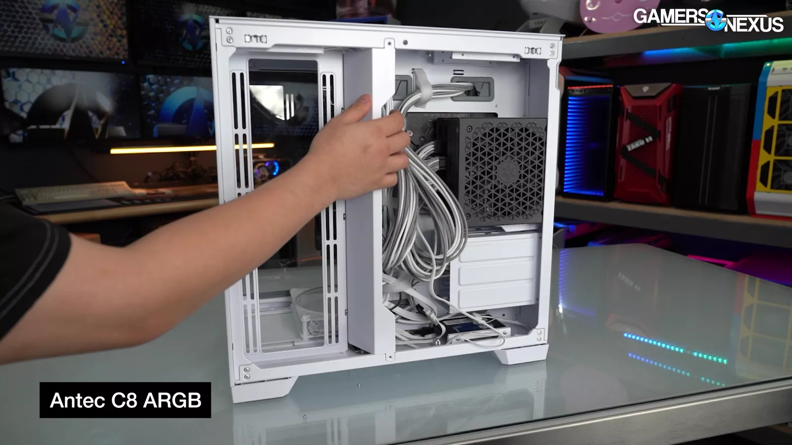 The C8's dual chamber layout isn’t new, but Antec impressed us with the level of care that it put into details like molding text into the fan frames, color-matching all the components in the white SKU, and the accessory kit. Small touches, even ones that aren't functional, add up to create a product that feels worth the price. The C8's appearance reminds us of the clean designs that made Corsair's 4000D Airflow (and 5000D, and 7000D, et cetera) so appealing, but we much prefer Antec's case to the directly comparable Corsair 6500D Airflow.