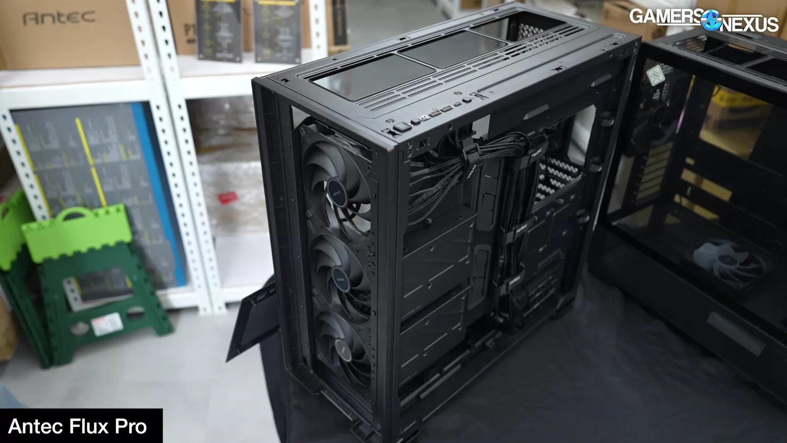 The company also had a non-Pro smaller Flux, which ditches the display and reduces fan count to a still-high 5 fans. The non-Pro is 70-80% new tooling. Antec plans to sell the non-Pro Flux for $110 to $120 in July or August, depending on shipping timelines.