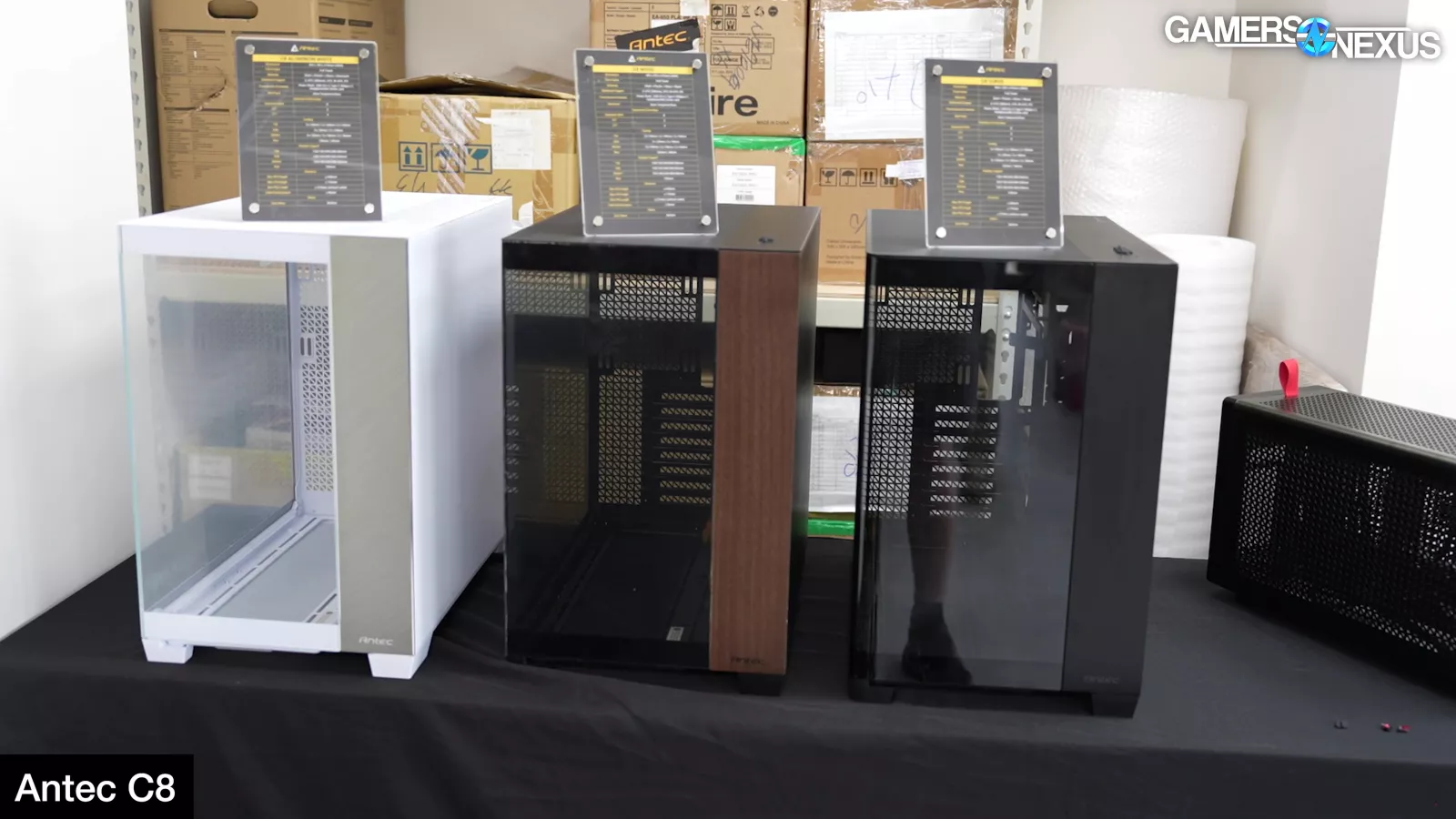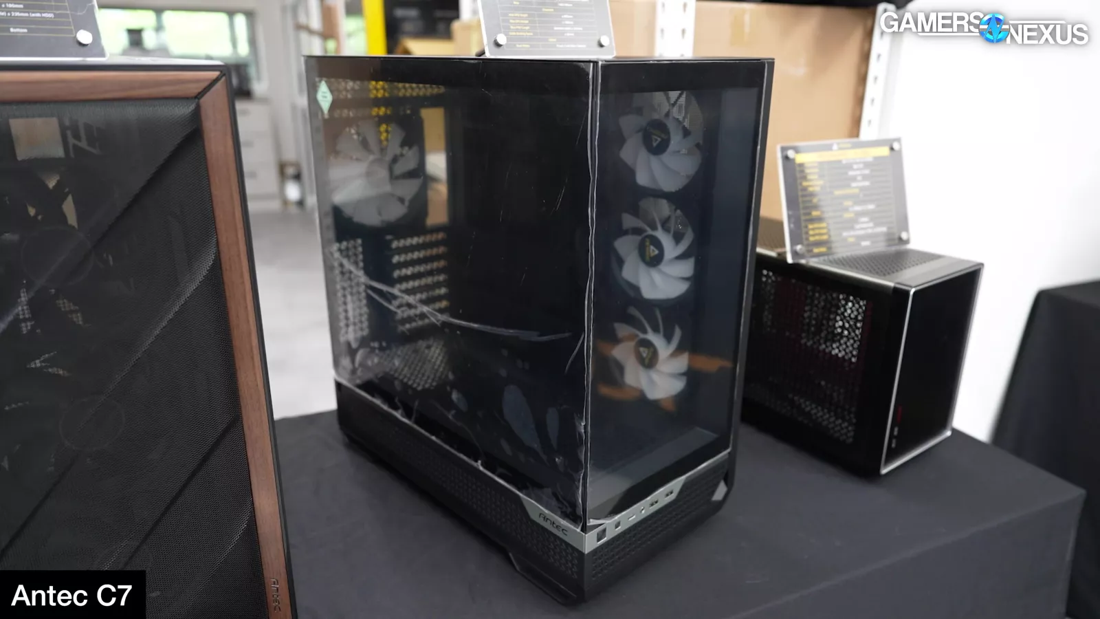 Finally, they had a C8 with alternate wood or aluminum panels -- our C8 review is in the works now -- and a C7, which we didn't care much for. We'll also talk about Antec's ITX case later in this article.