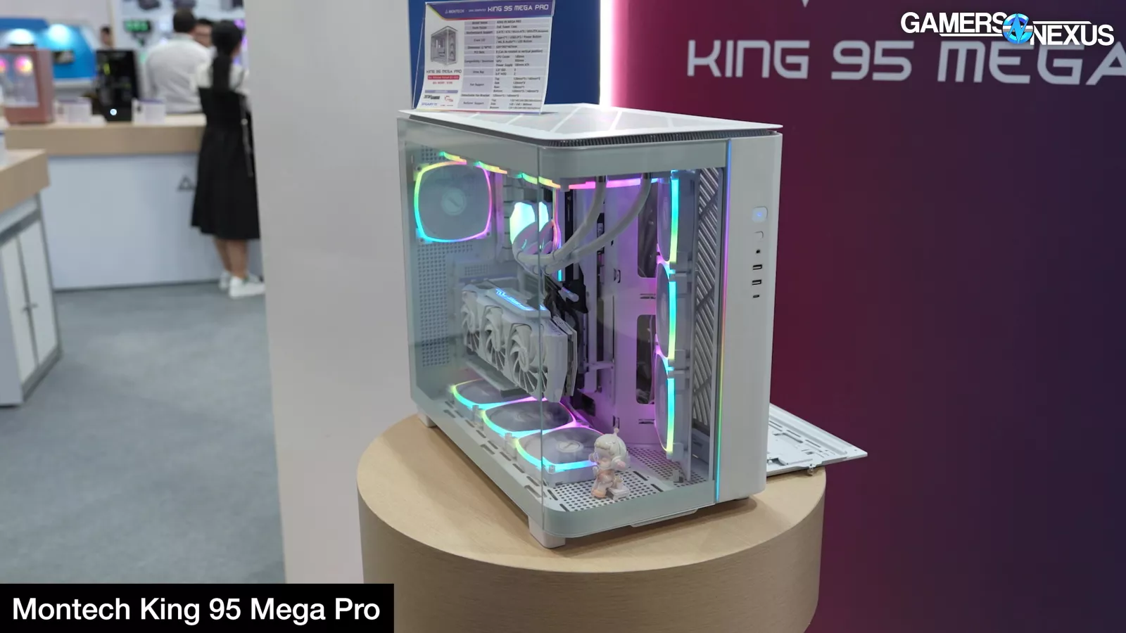 The company had its new ultra-budget case, the XR, at $64 to $70 with 3 fans on the cheaper and 4 total fans on the XR Mesh. They also showed the new King 65 Pro chassis, which is a cheaper King 95 of similar size. Then there was the King 95 Mega Pro, which plans to hit the $200 mark with 7 fans included while also bearing a name that belongs in Quake III.