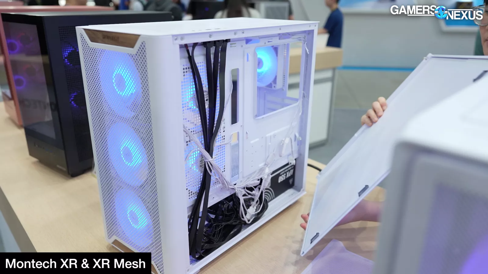 The last few weeks of case announcements have been completely overwhelming -- and a lot of them look actually pretty good. One of the case manufacturers described the current case market as “a bloodbath,” saying that budget, high-performance airflow cases are getting so cheap and good that it’s hard to compete. Some of the most interesting cases at the show included Lian Li’s LanCool 207 with its sunken-floor intake fans for GPU cooling, be quiet!’s Light Base 600 and 900 cases with their flat style layout, Montech’s $64 XR glass fish tank and $70 XR Mesh airflow cases, Phanteks’ G400A for a budget ultra-airflow case, and SilverStone’s Alta D1 for some mechanically impressive functionality. And then there’s the usual showstopper from In Win, this time using a 180-degree bend of straight-up glass -- not even tempered -- with aluminum and a linear actuator to open it all. And the actual showstopper: Fractal’s PiNorth case that uses actual North wood paneling for a Raspberry Pi, but technically isn’t launching. But that’ll change now.