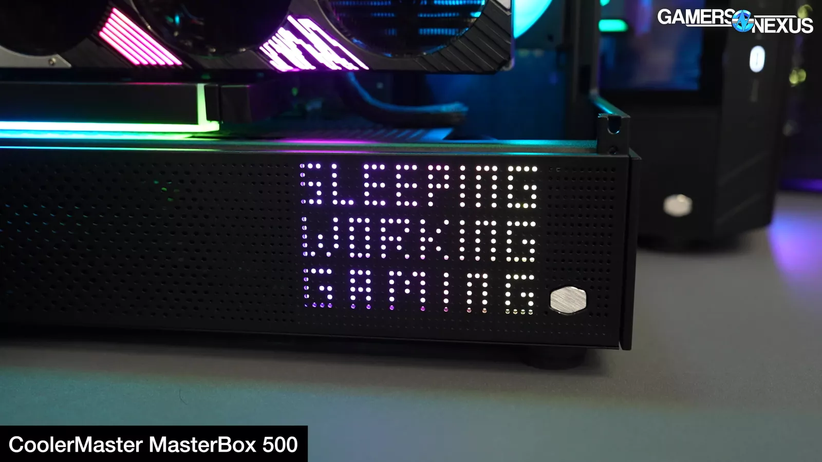 The MasterBox is a relatively uneventful case in that it matches other cases in its price point. The Box will be $140 for the glass variant and $120 for mesh. Both include a rear 120mm ARGB fan and the Mesh model includes 3 additional 120mm ARGB fans, totaling 4. The cases share the same tooling. Cooler Master intends for the LED side panel to be customizable, so the angsty LED lettering should be swappable to other pixel-based designs in software.
