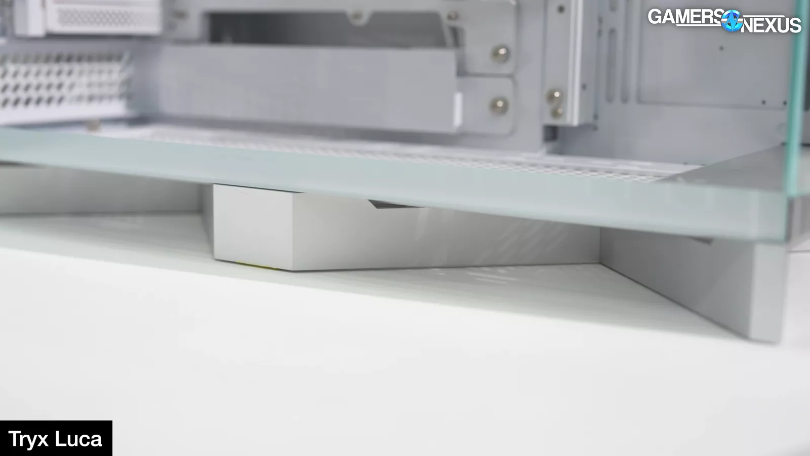 This case is function-first: Lian Li is sinking the bottom fan tray in the case to get closer to the floor, which will give the fans closer access to outside air to improve GPU cooling performance. The PSU has been moved to the front of the case in order to accommodate this. The case is overall compact and tries to get as close to micro-ATX as possible while still fitting ATX components.