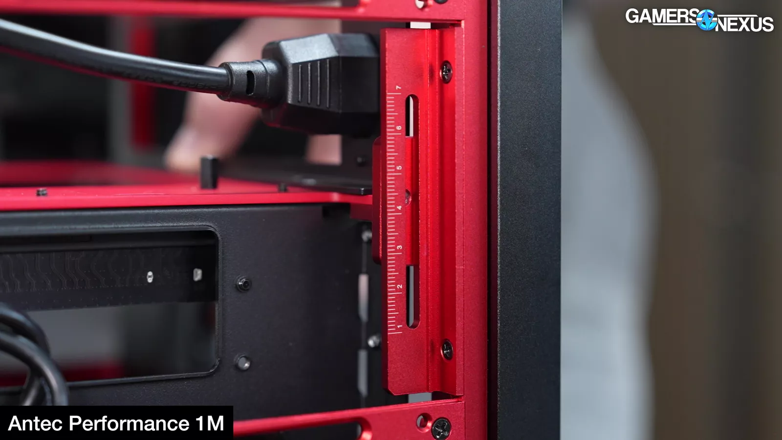 Finally, Antec also had an ITX case present: The Performance 1M uses a red interior frame and a mixture of aluminum and steel to create a back-to-back style ITX build. From our hands-on with the prototype, the mechanism isn't as refined as the Terra, but we did like the red accent and saw potential in the design. The case fits a 3-slot GPU with adjustable depth to bias toward the CPU or GPU cooler, as with the Terra and other similar cases. Antec is still finalizing the case.