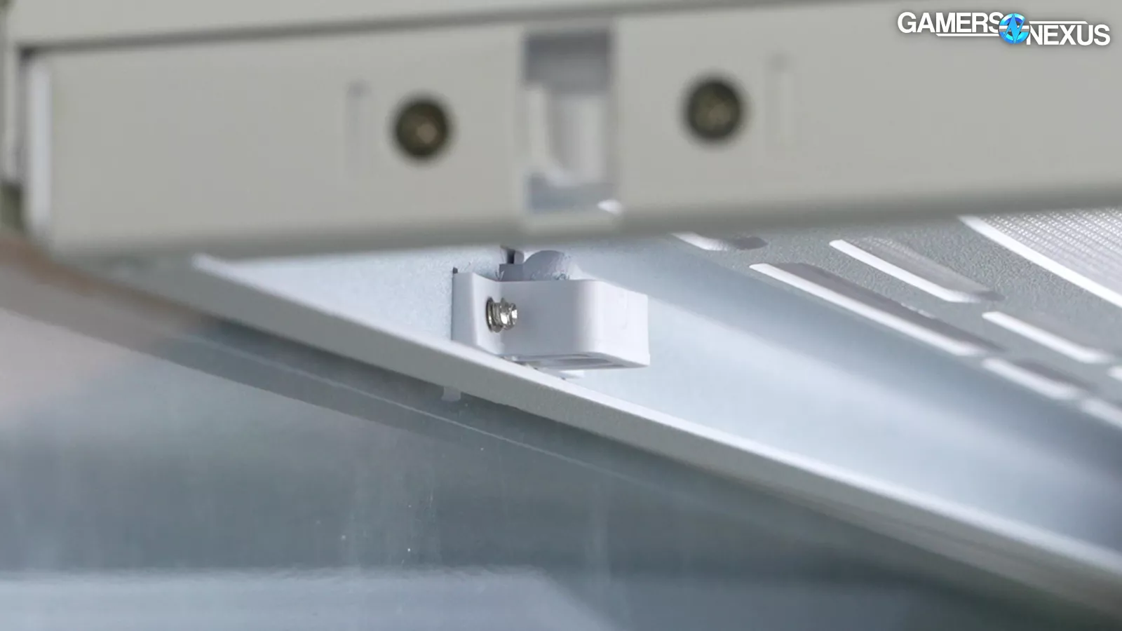 Its snaps were already loose, but knocked out of alignment, they can barely hold its panels on. There's a reason that cases often have a support pillar in the front corner, or at least something like the Lian Li O11 Vision’s triangular bracket.