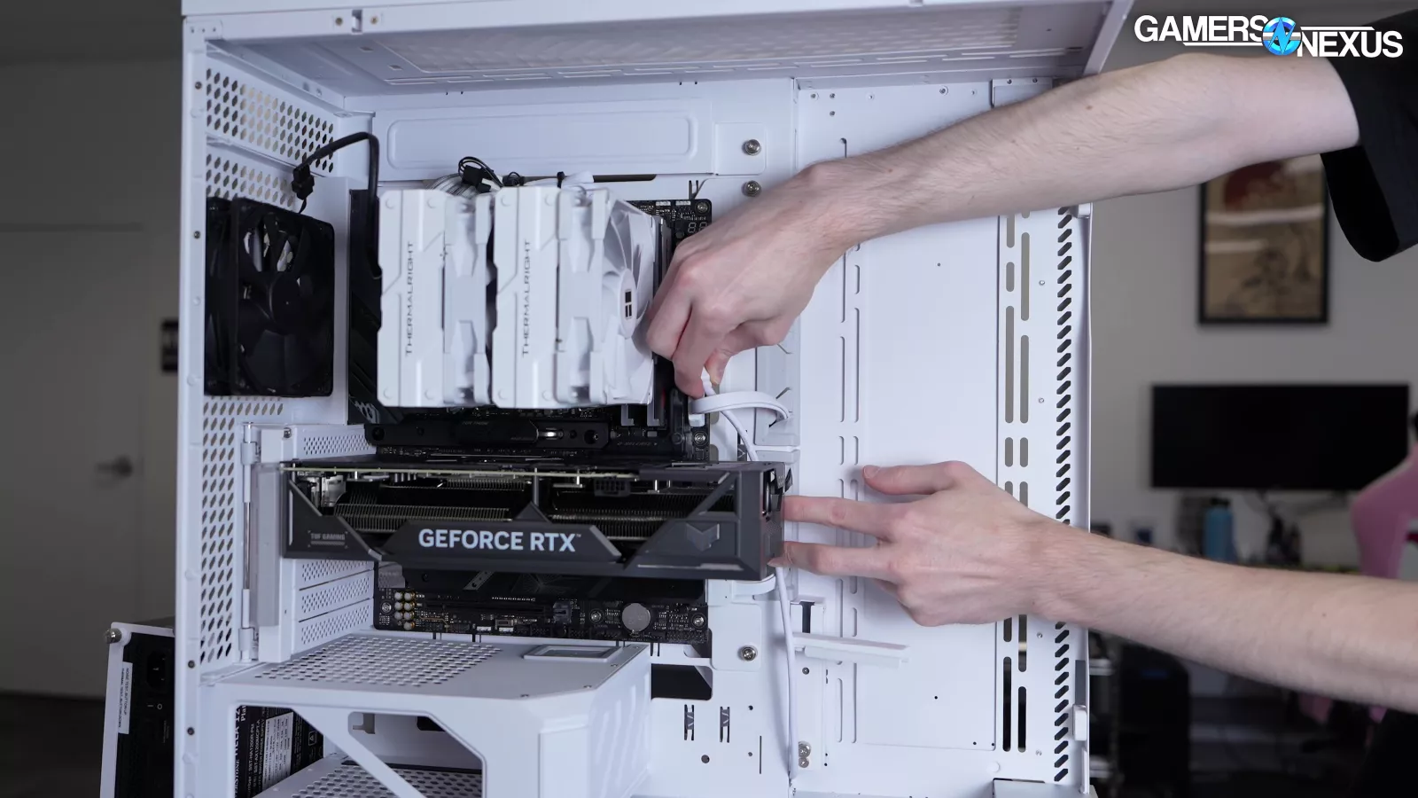 The change may seem counterintuitive since the bottom intake slots are directly beneath the GPU, but those slots are far more restricted than the side intake ones, to the extent that one of the fans is basically useless.