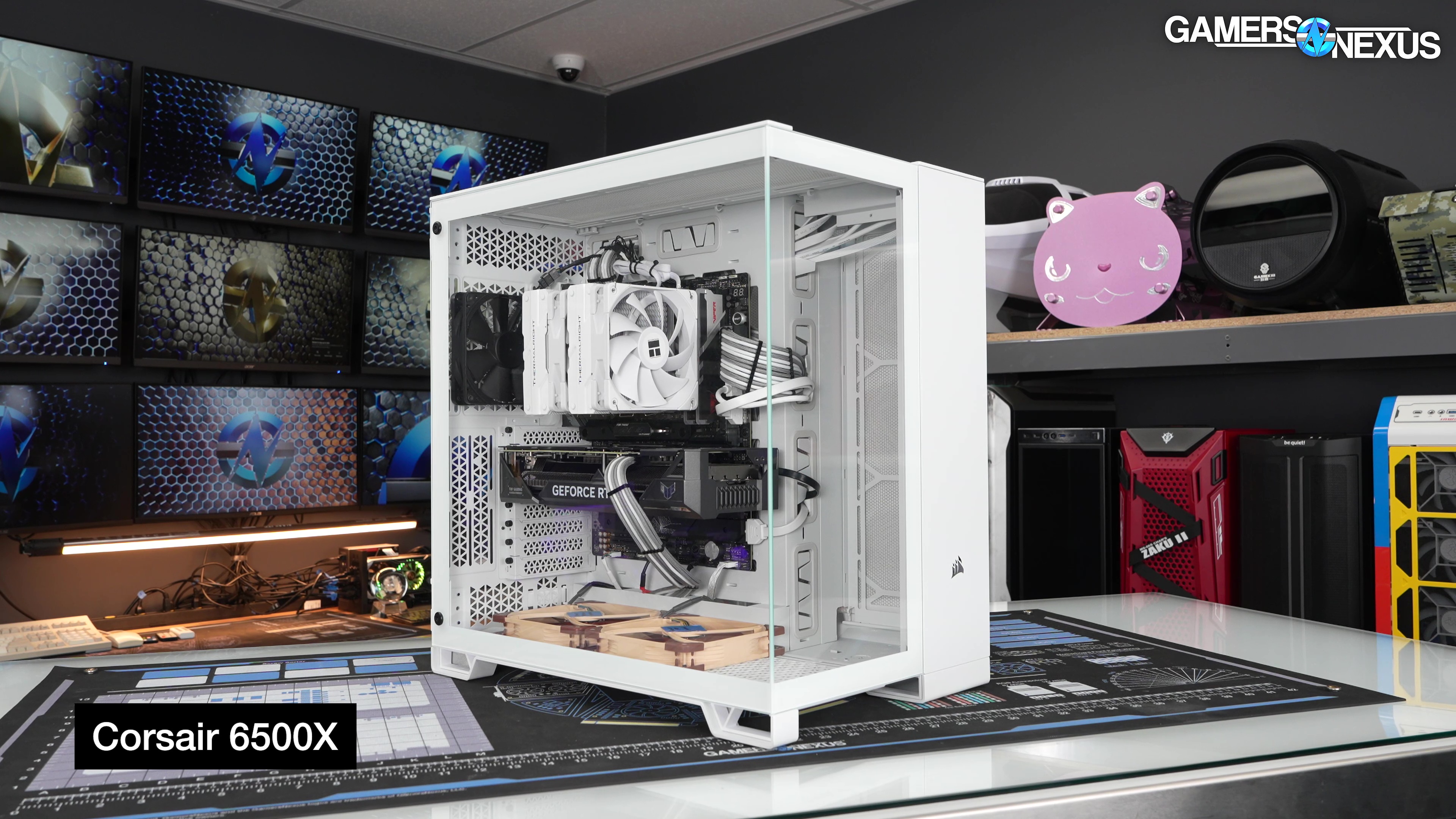 Now for thermal testing. We're covering both the 6500X and the 6500D Airflow here, neither of which come with case fans, so we used the standardized set of Noctua fans for most testing. The exception is that the side mount only fits 120mm fans, so for side intake tests we changed out the usual two Noctua 140mm fans for two Arctic P12 Max fans.
