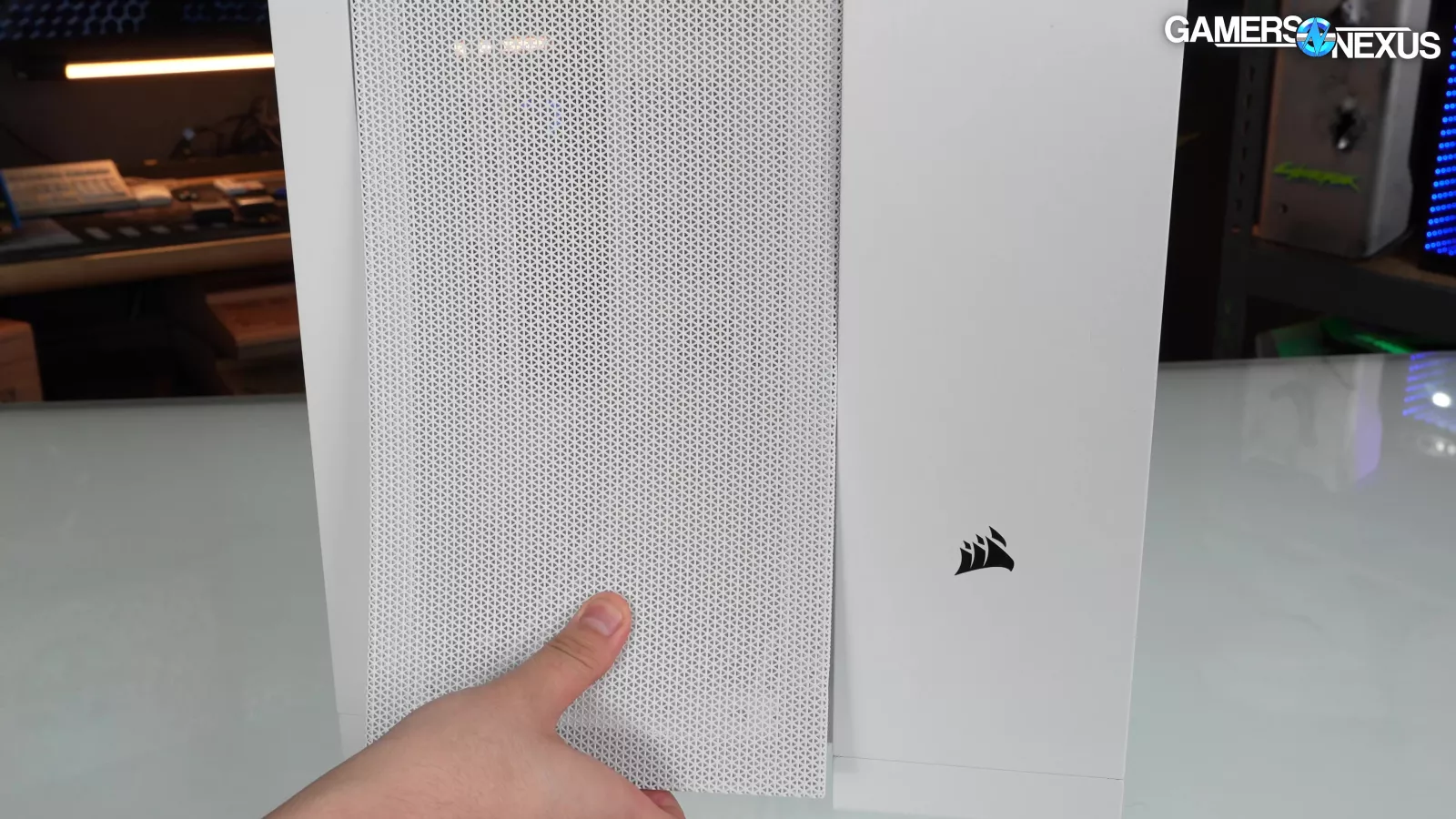 We like airflow, and we like Corsair's triangular-vent-hole motif, but the mesh panels are unpleasantly fragile. It's a strange contrast with the complete overkill armor plating in other areas. Since all of the panels snap into place, removing them requires prying them up from one side, which unavoidably curls them.