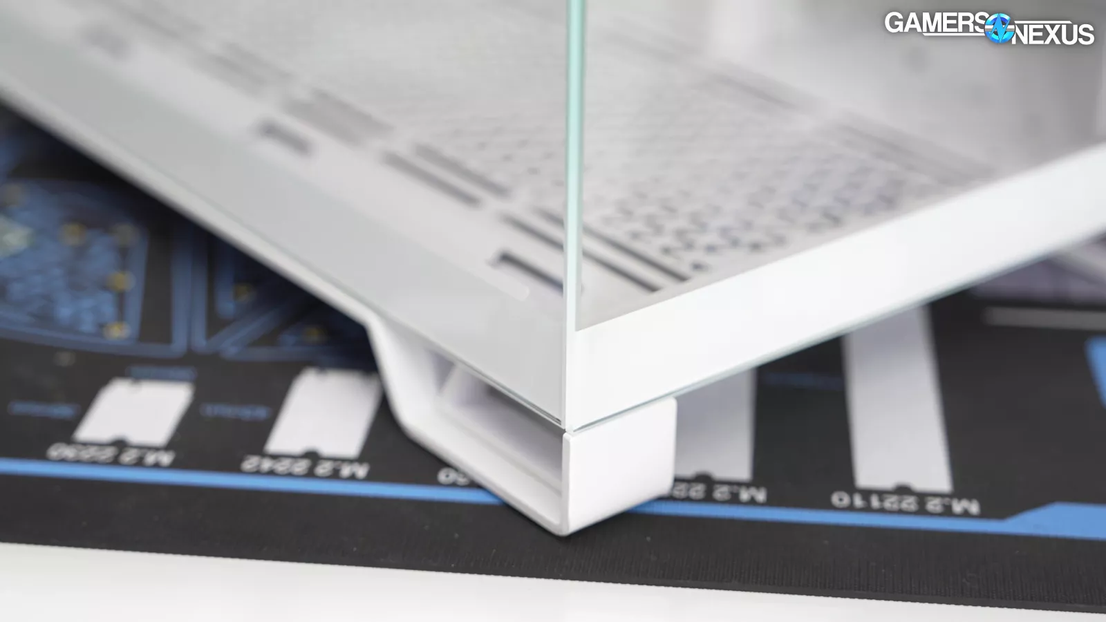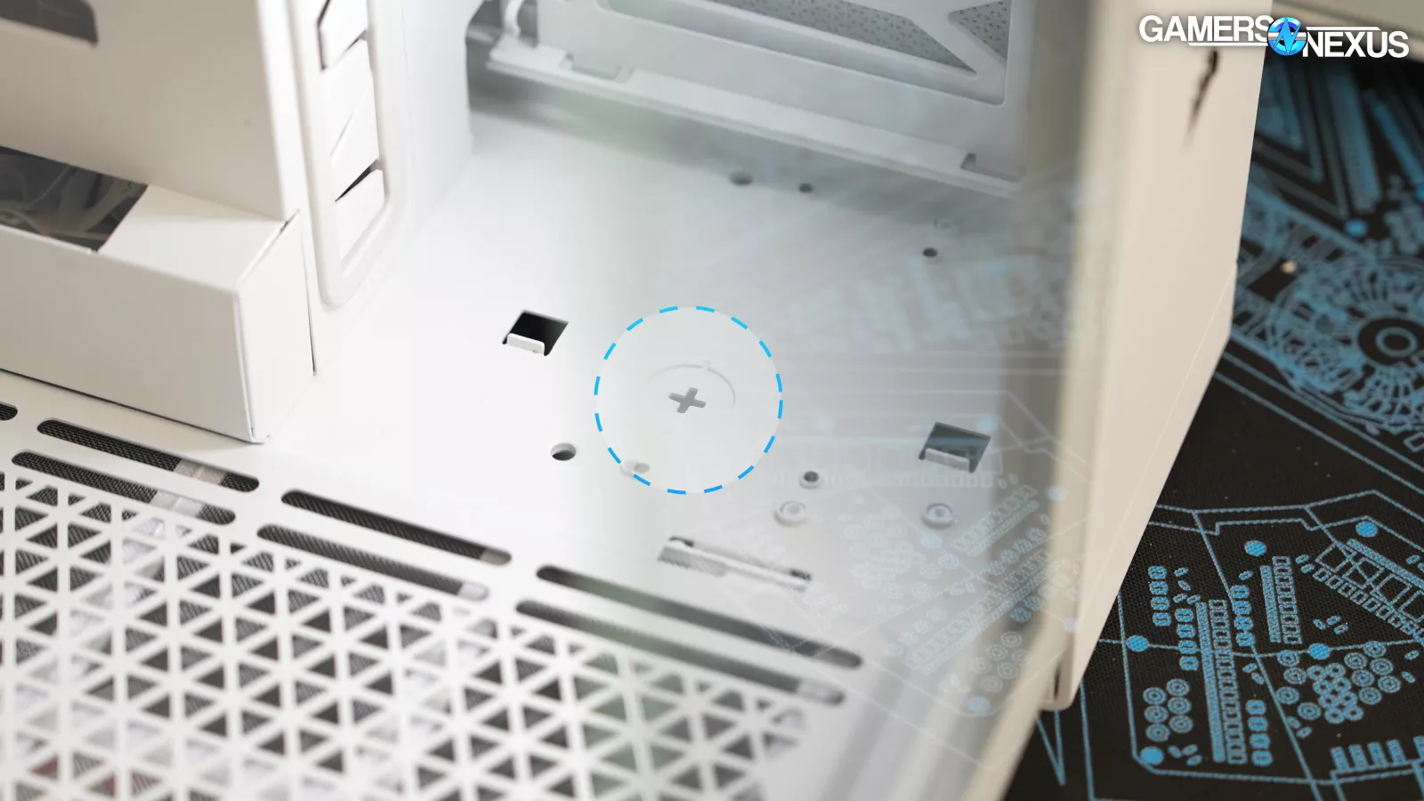 For open loops, there appear to be pump or reservoir mounting holes next to the expansion slots and a drain hole at the bottom of the case. We say "appear to be" because Corsair doesn't mention these features in the online manual (there is no physical manual), or the reviewer guide, or the jumble of tagged posts on their website. This is a premium case with "showcase glass panels" made by a company that has its own line of open-loop hardware, but Corsair's only acknowledgment of open-loop hardware in a 6500 is in this video and the article that accompanies it. Corsair needs to organize its materials: there are genuinely helpful blog posts, but finding specific information is a chore.