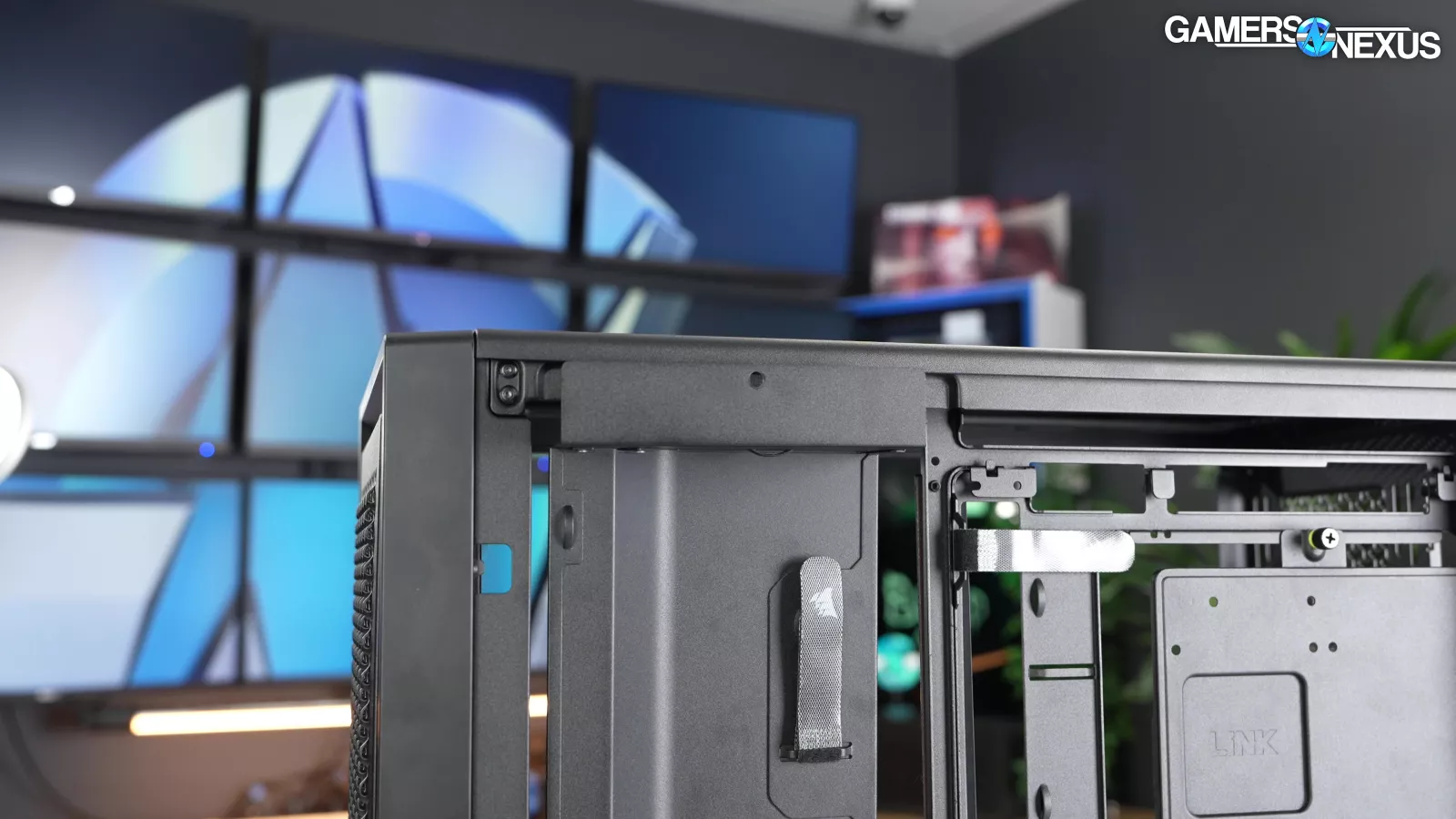 The only significant fit-and-finish issue with our review sample was that one of the plastic pieces of the ball snap fasteners had popped out of the chassis in shipping. We were able to find it and put it back, but just like the InfiniRail clips, Corsair didn't provide any extras (like some other manufacturers do).