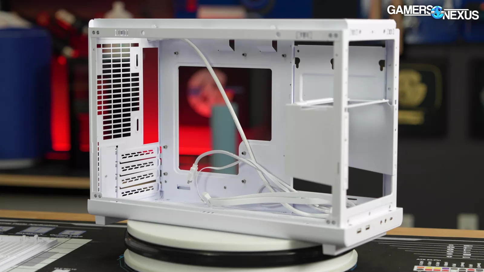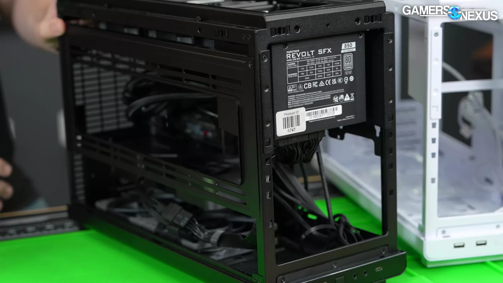 The case also comes with side mount options. We actually observed that the side mount makes it possible to worsen GPU thermals in a way that may seem counter-intuitive, so let’s explore that.
