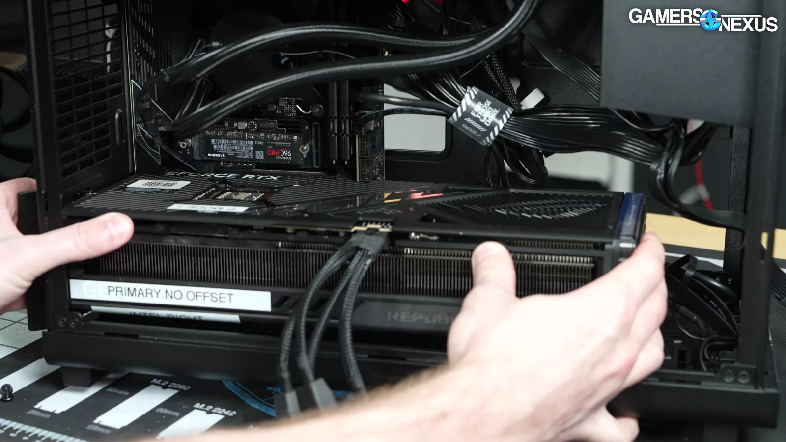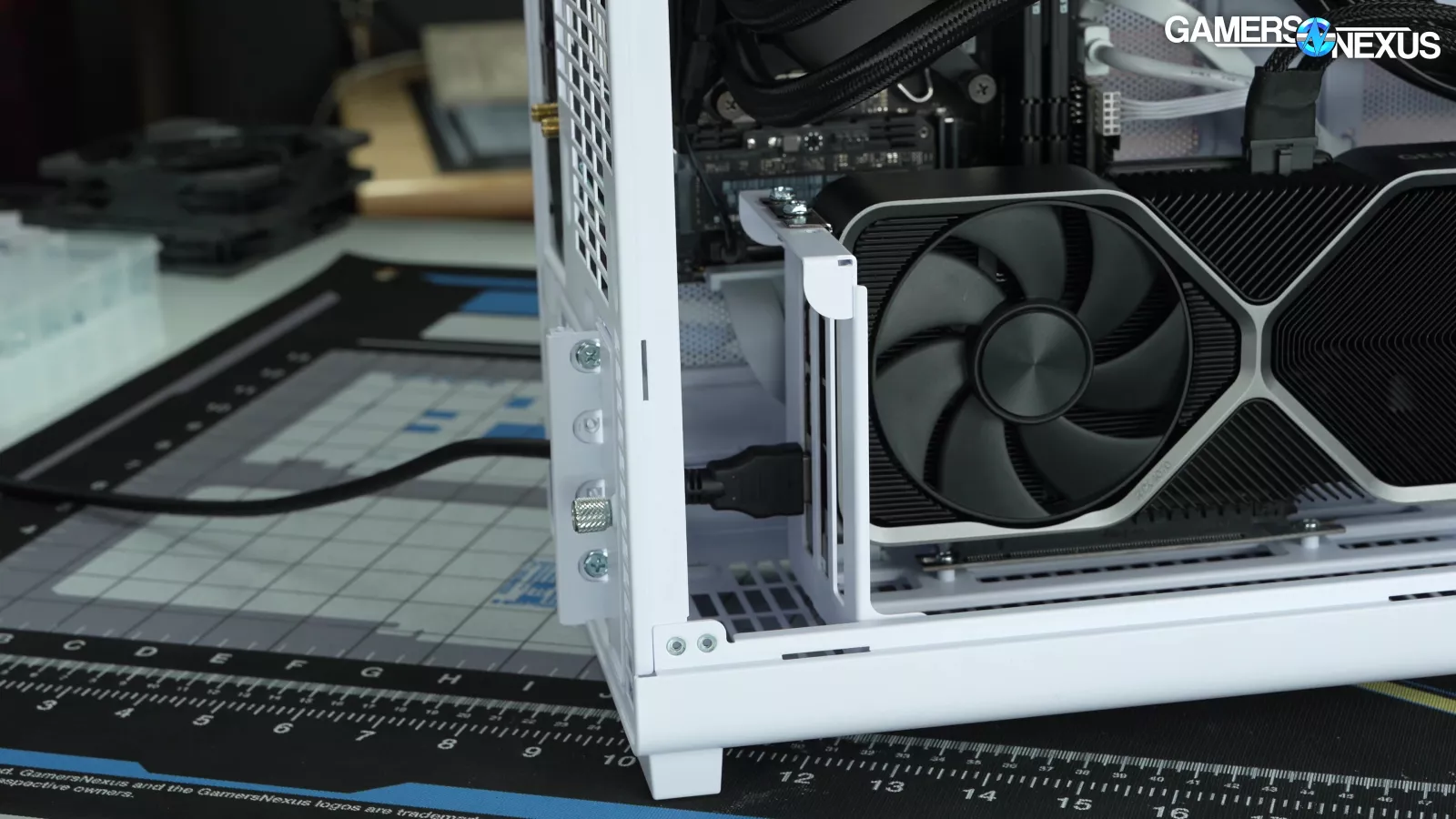 Unfortunately for vertical GPU enjoyers, that configuration was one of the worst results if not counting the troublesome side intake configuration we talked about earlier. We suspect recirculation is to blame for parts of this, as the exhaust coming out of both the PCIe slot area and the flow-through area don’t have easy paths to get out of the case naturally.