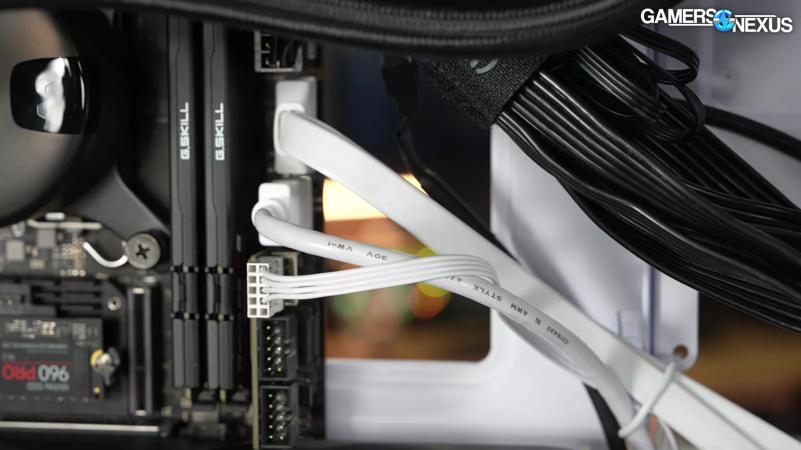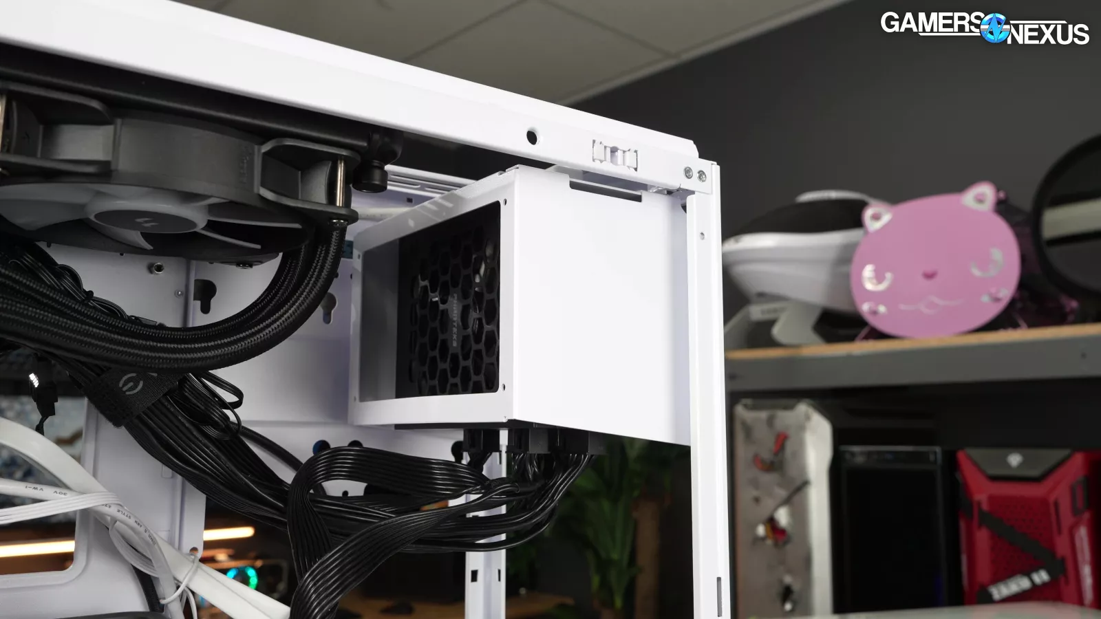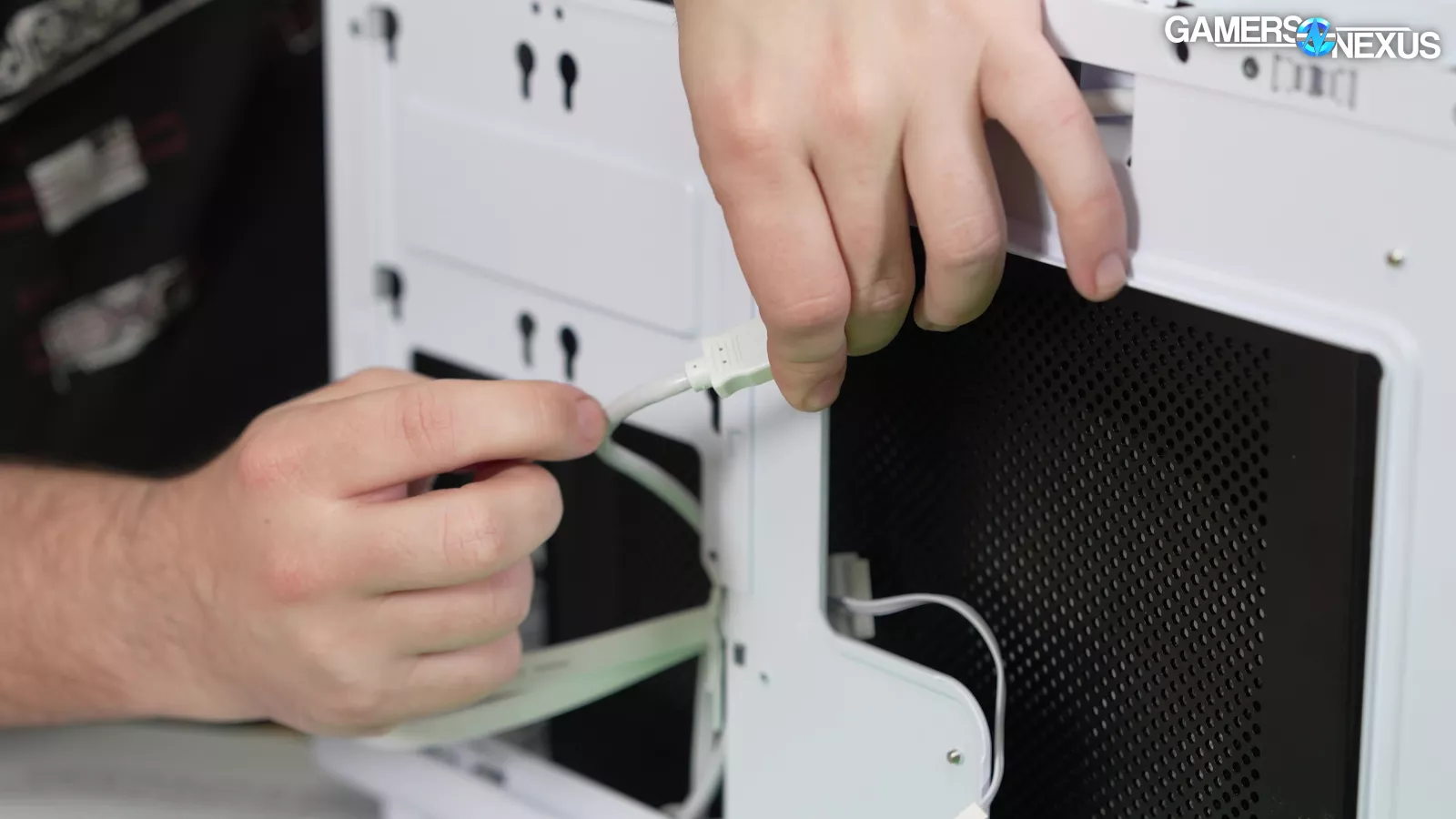 White is known in the industry to be a challenge for color matching across materials. On the white version, the color doesn’t match across some of the internal cables, connectors, and the AC power plug on the rear of the case.