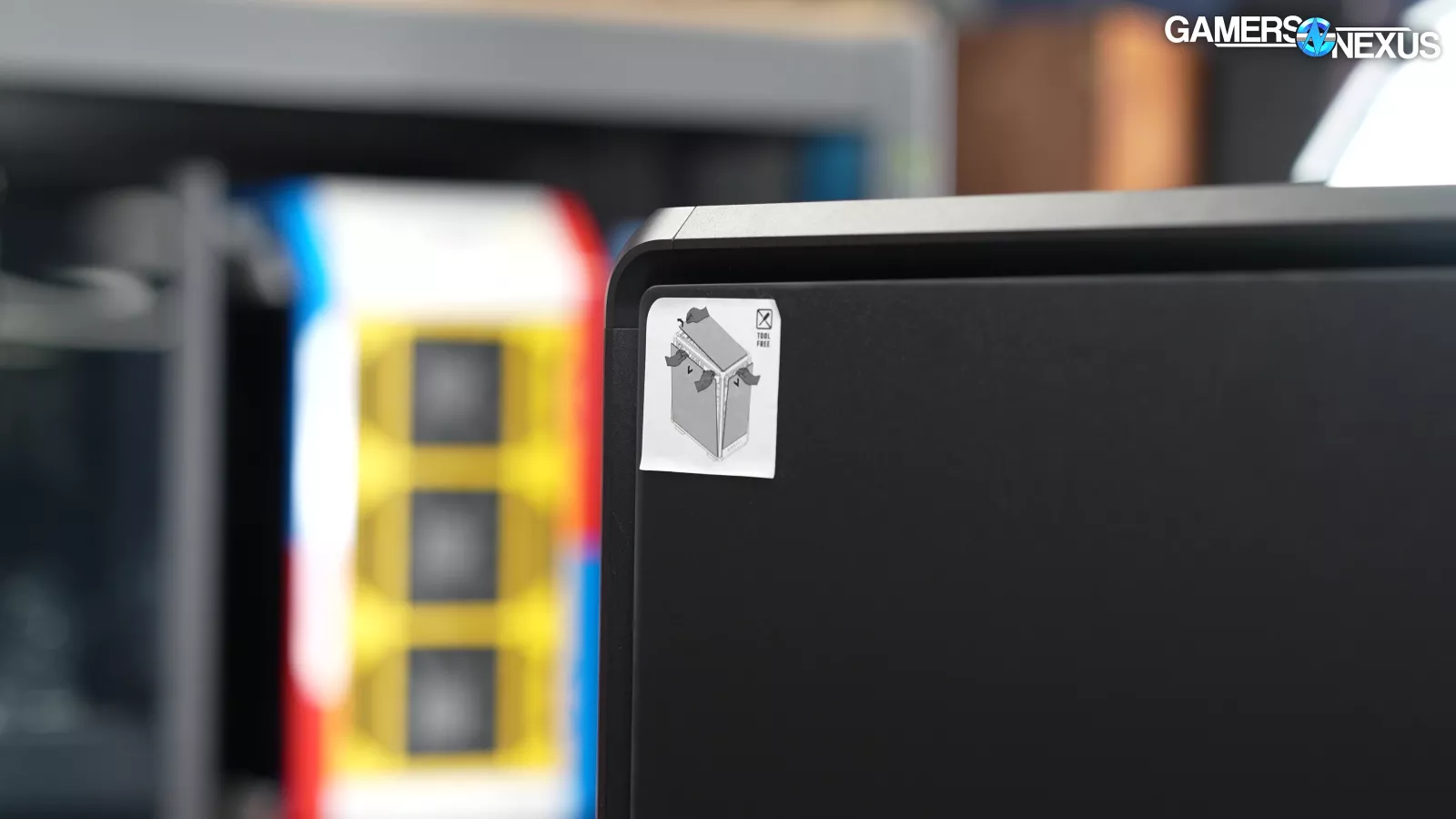 As the sticker on the case and instructions in the manual state, panel removal is TOOL FREE. Cooler Master has made a compromise here; the panels don't screw down, but the magnets that hold them on are extremely strong to compensate. There are also no obvious handles on the panels, so you may actually find it easier to pry the panels off with a tool. This is better than cases without a securing screw and an easily removed panel, but it’d still be nice to have a screw point to secure the glass.