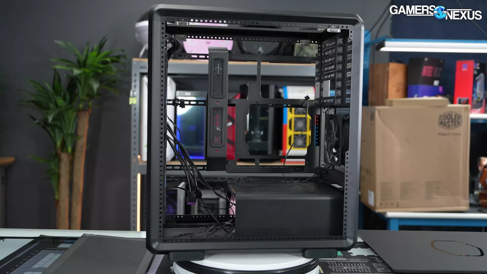 There are smaller items that can be moved around, like the front I/O and the drive mount, but those are the most transformative options. Cooler Master’s future expansion on this series hopes to add even more modularity, but we don’t review future promises. We review what’s actually shipping.