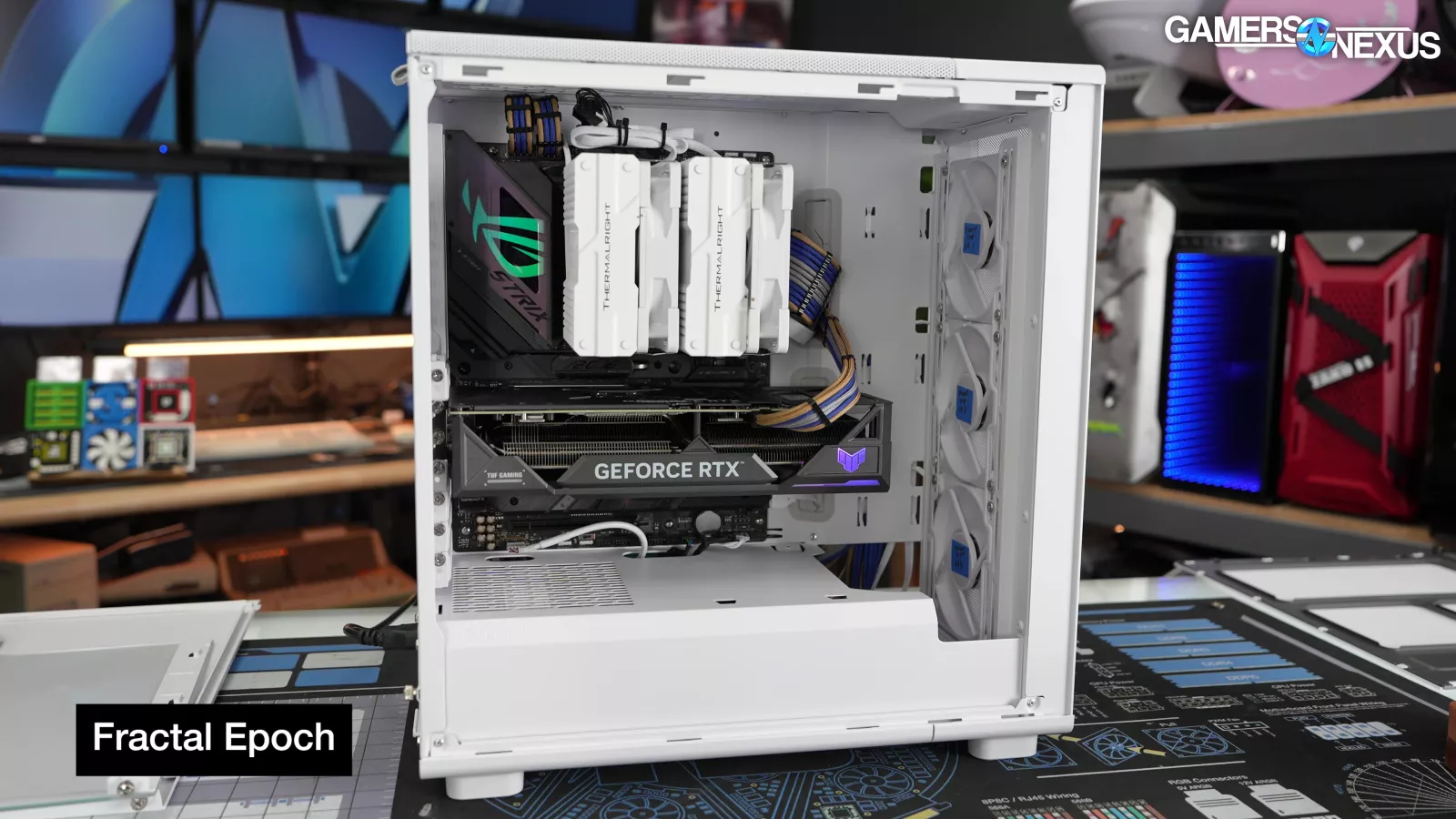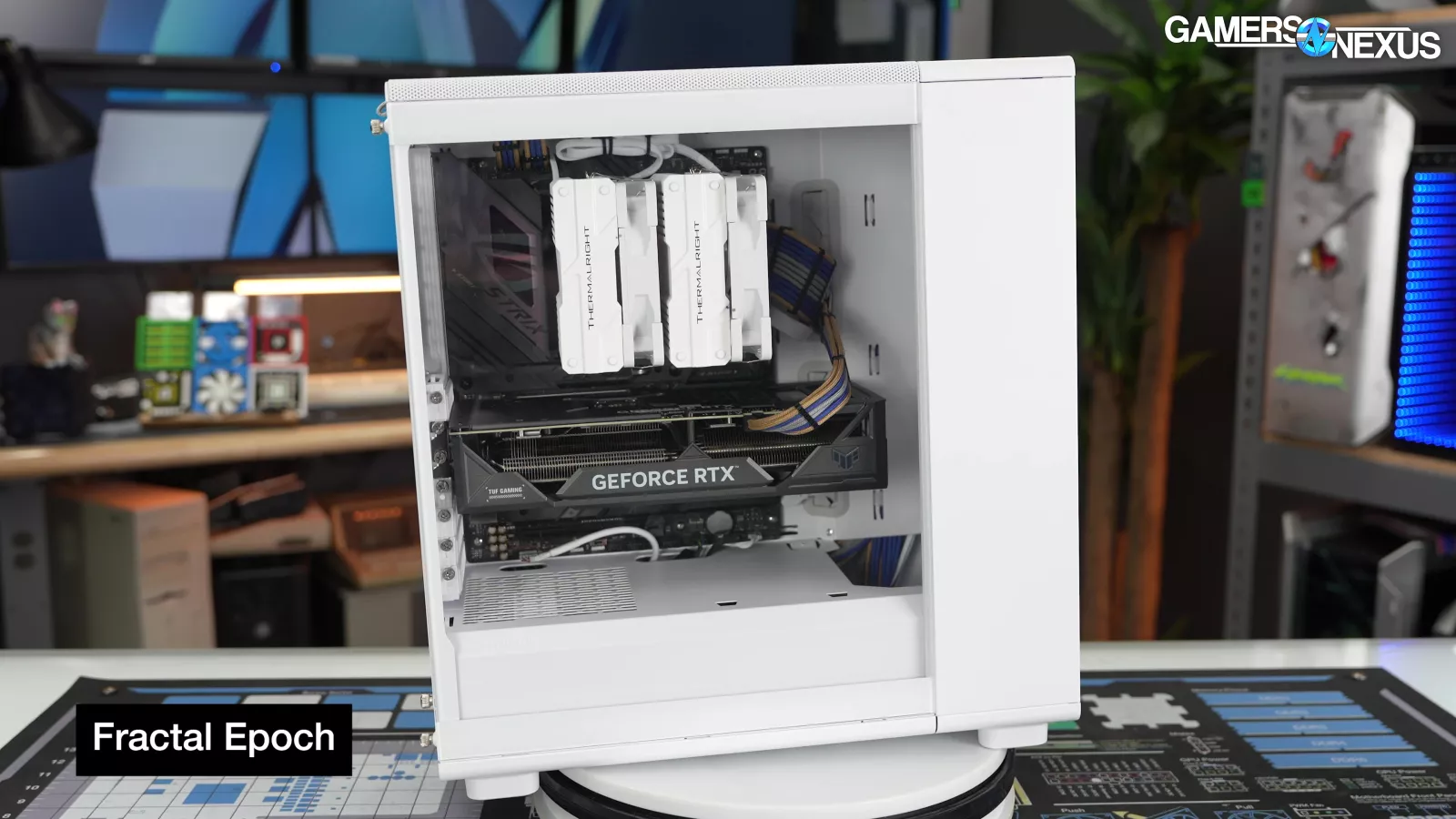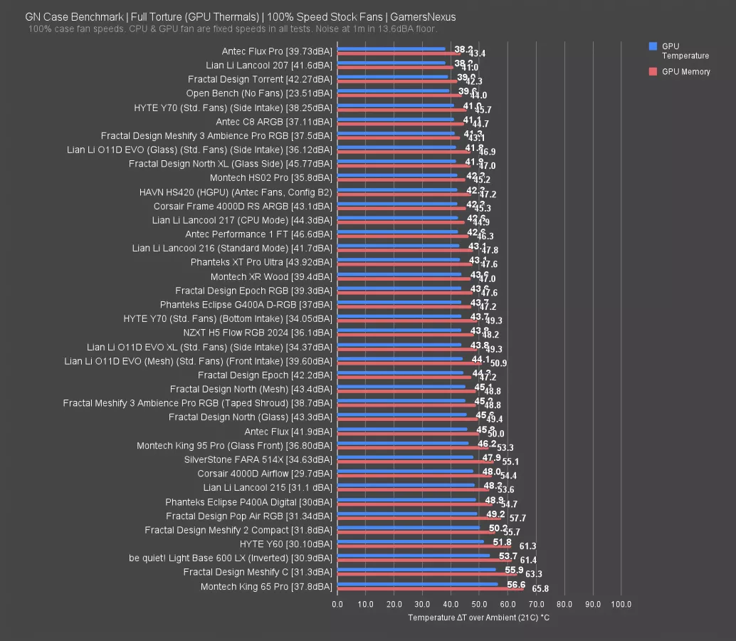 In terms of GPU thermals, the Epoch, the mesh-sided North, and the glass-sided North all averaged the same: 46 degrees above ambient. The Epoch's front panel may be cheaper, but it's not worse for thermals.
