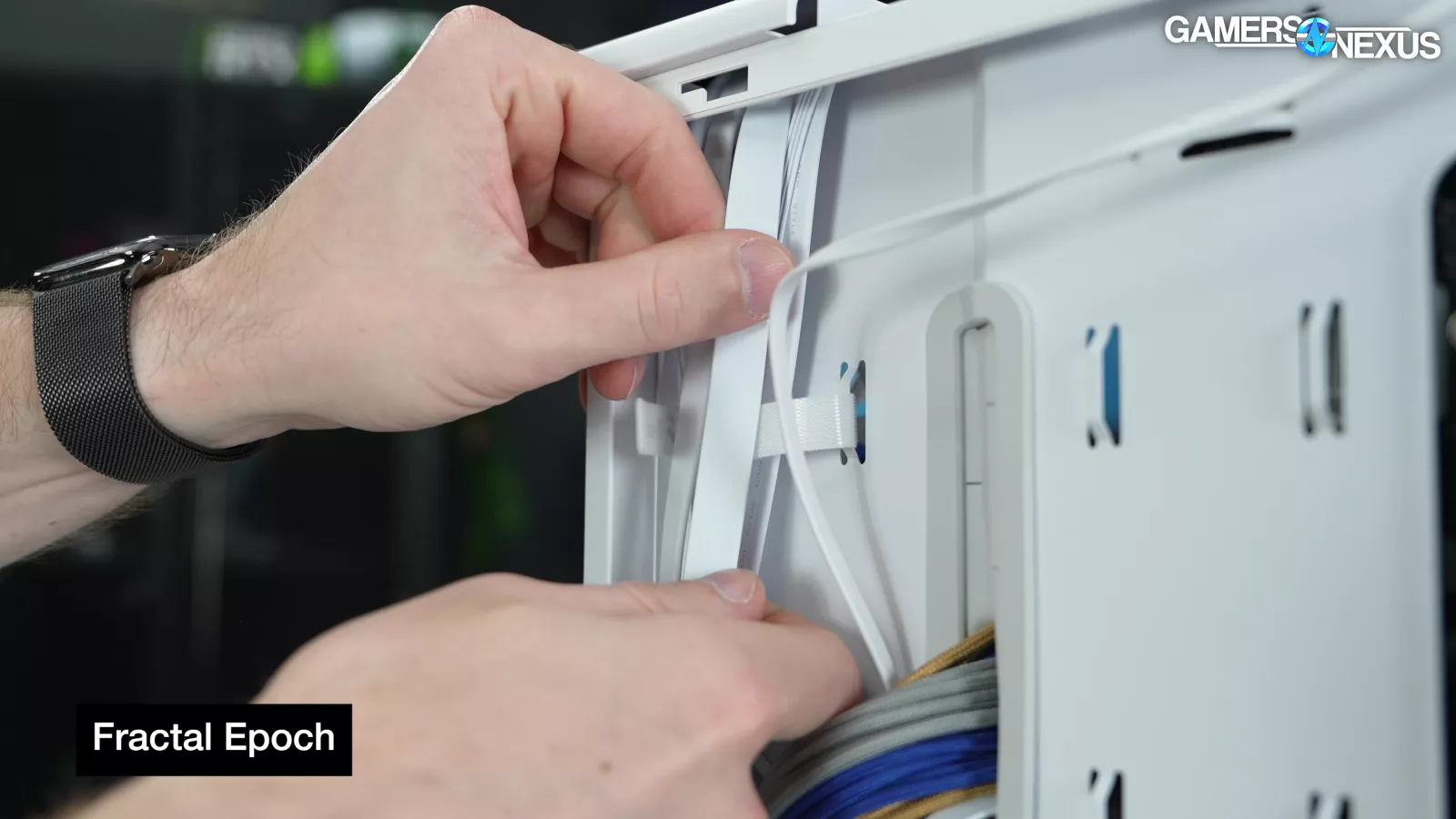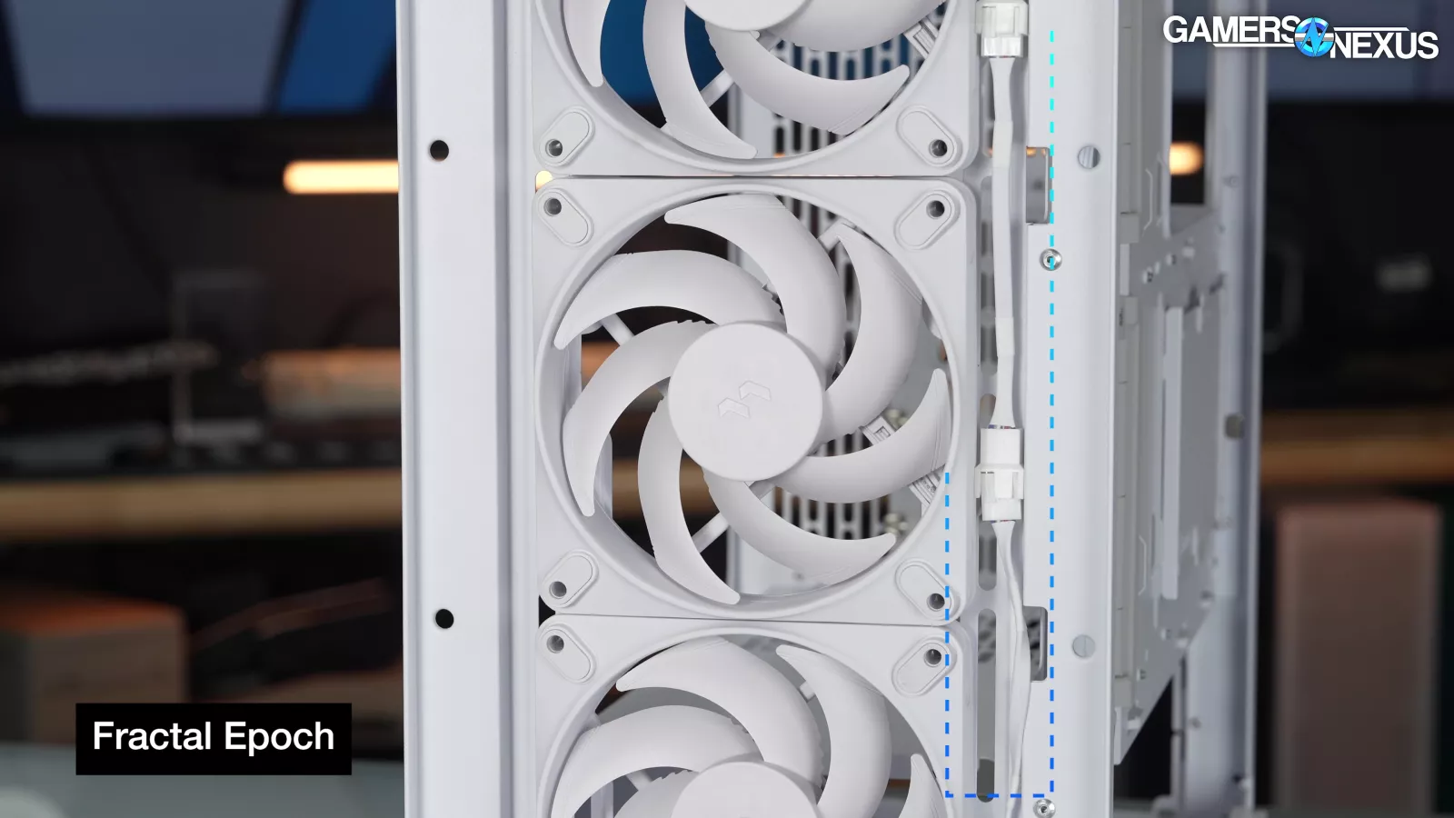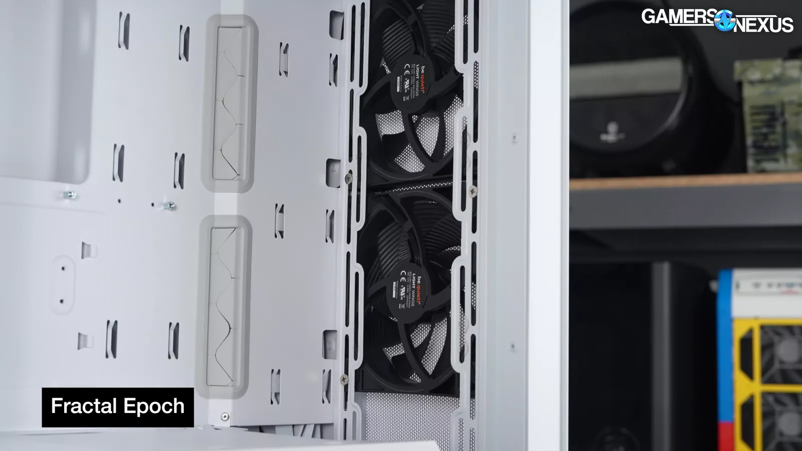 A couple of features from the North have been removed, presumably to cut costs. There's currently no mesh side panel option for the Epoch, which also means that there's no side fan bracket (and no mounting holes to install one). There's also no built-in fan hub, but Fractal has handled this by daisy-chaining fans in both case variants.