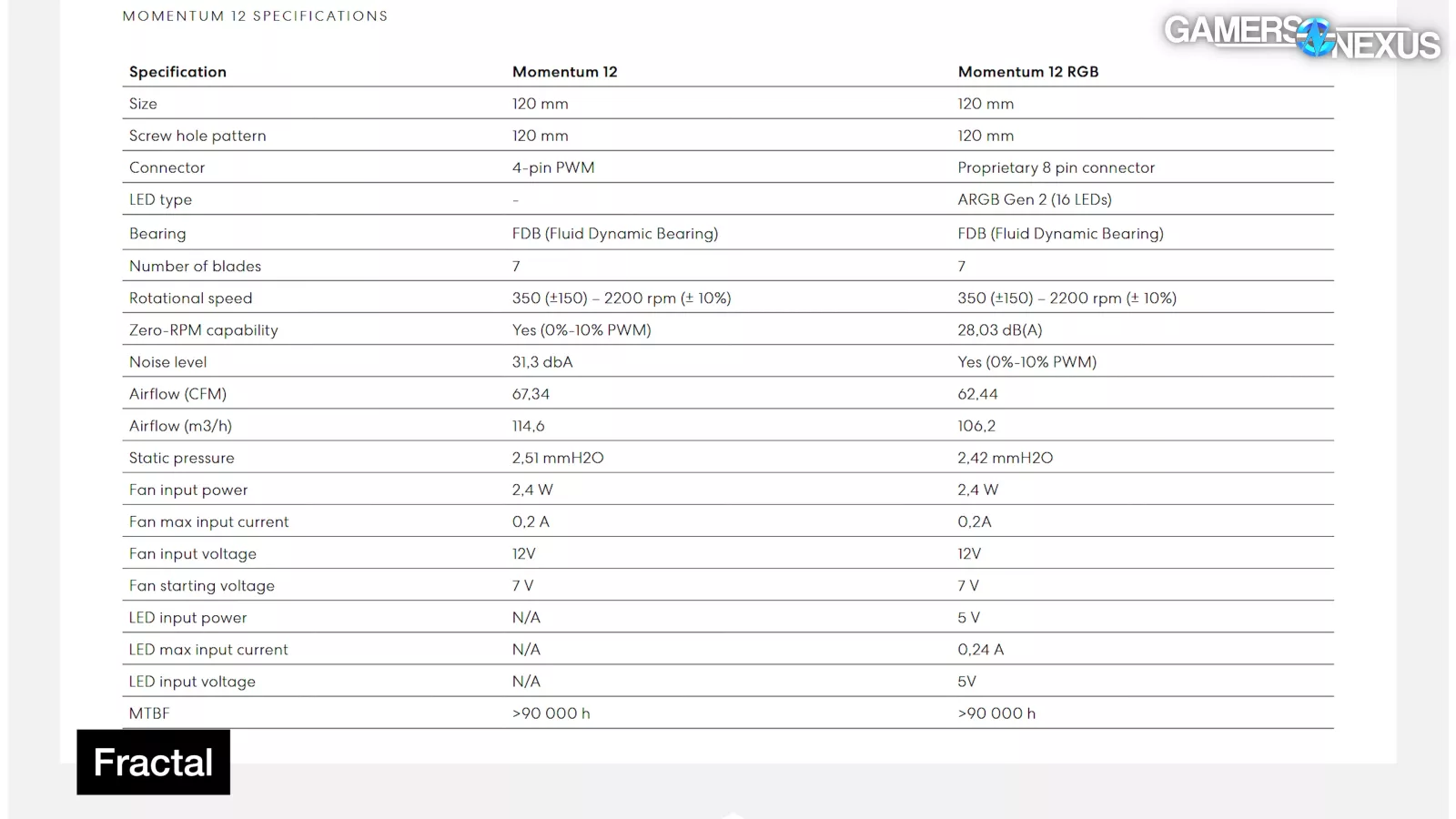 The non-RGB Epoch will be our main point of comparison since the RGB version costs $130 and could have slightly worse thermal performance. According to the spec sheet, just like with the Meshify 3, the non-RGB fans can generate more noise and move more air at peak speed. Now we have an opportunity to actually test for differences, although they should be minor, and the rated RPM is 2200 for both models.