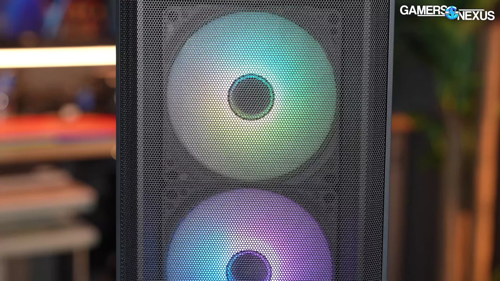 The Lian Li Lancool 207 is the new best-performing case on our thermal charts -- and it’s $80. The case shoves the power supply to the front to accommodate 2 shroud-top fans that are closer to the floor of the case, providing intake directly into the GPU. The front of the case has a shaped front inlet for 2x 140mm fans cooling the rest, and the back is entirely ventilation to allow exhaust.