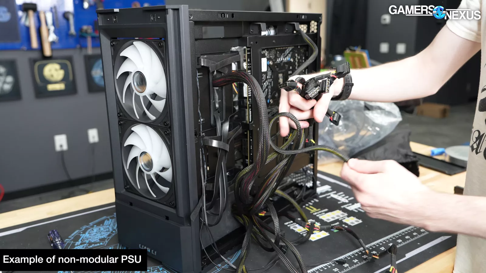 We’d strongly recommend flat cables like the ones shown in the 207 at Computex. The more accessories and PCIe power cables you run, the more difficulty you’ll have managing the cables in this particular case.
