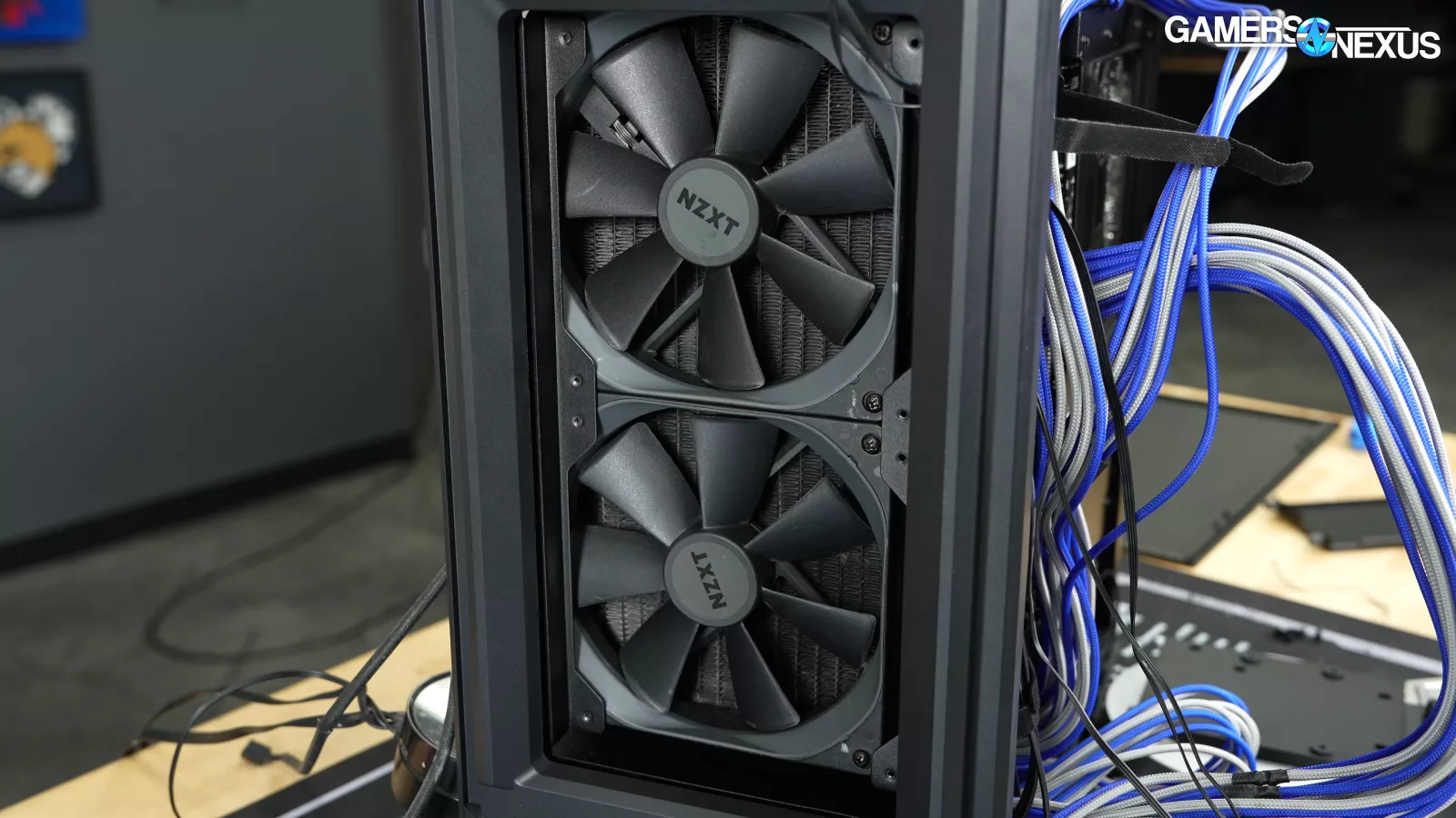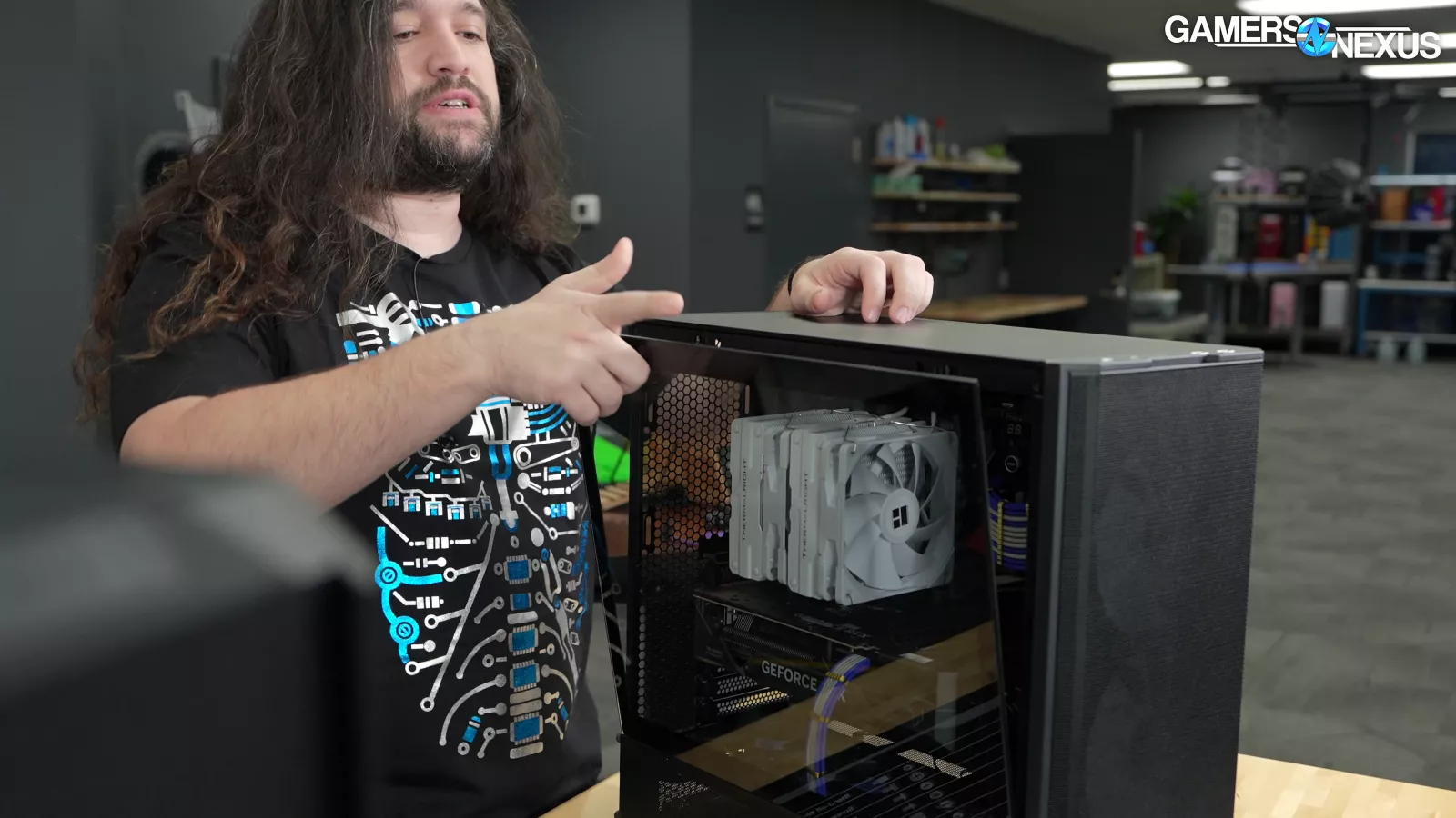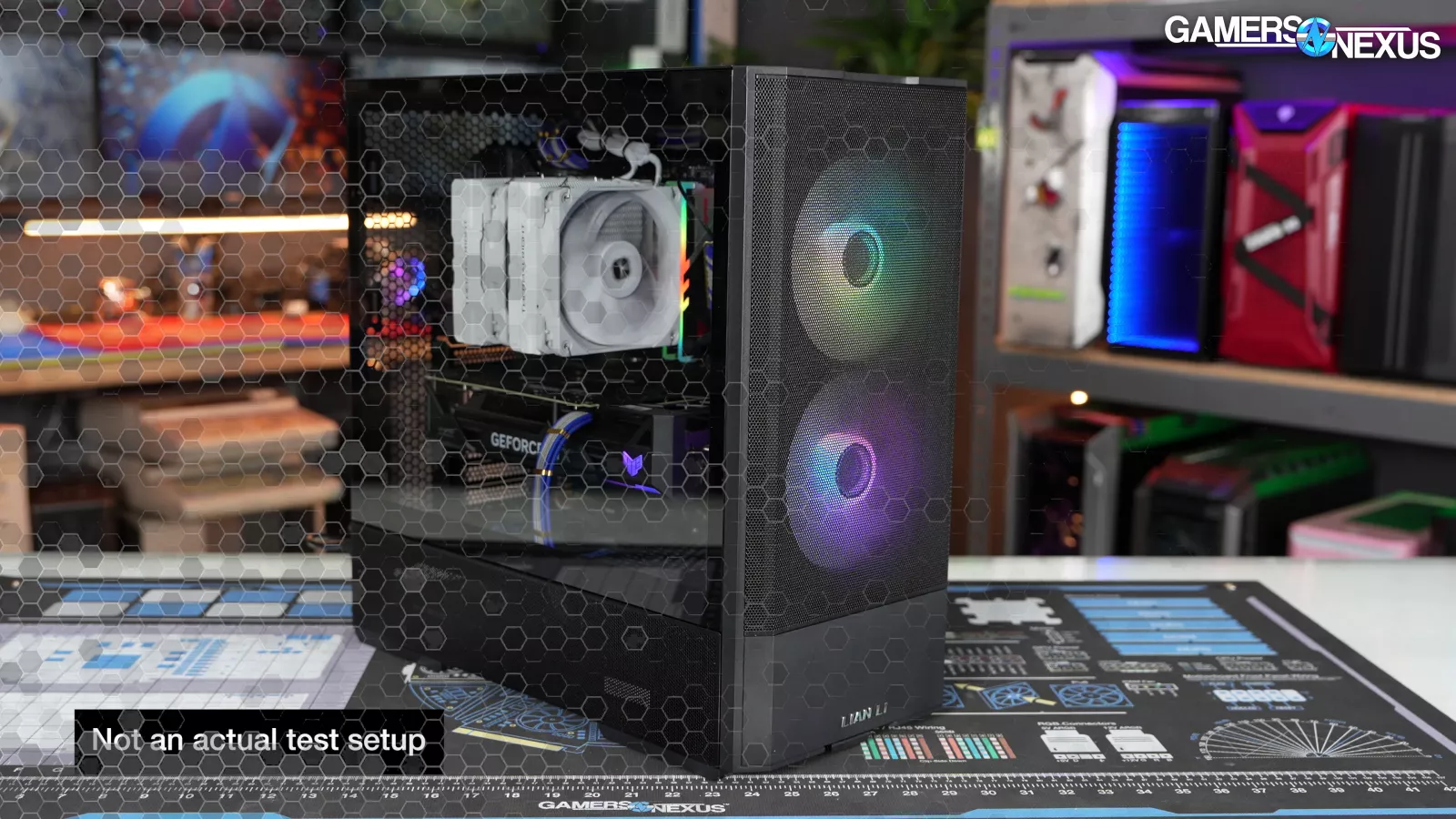 We only ran basic tests in "standard mode" on the 216. There's also an "air cooling mode," but in our original review, we found that this helped GPU thermals while simultaneously hurting CPU thermals with our bench hardware. Check our Lancool 216 review for more detail on alternate configurations, including an external fan bracket attached to the back of the case.