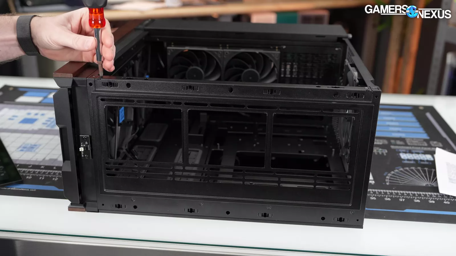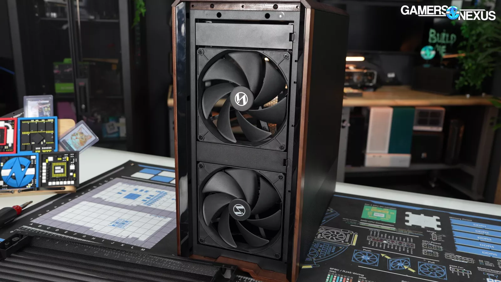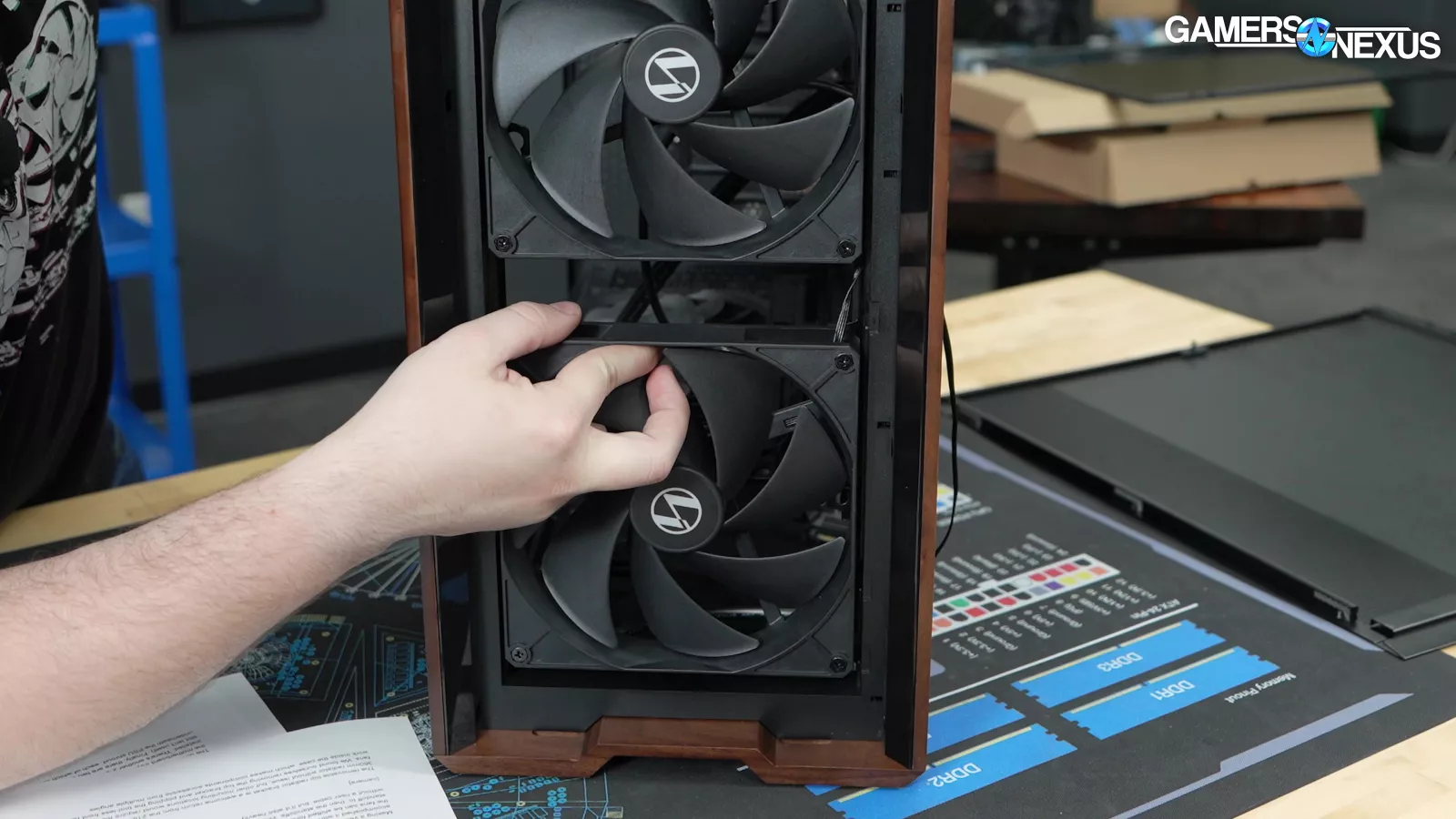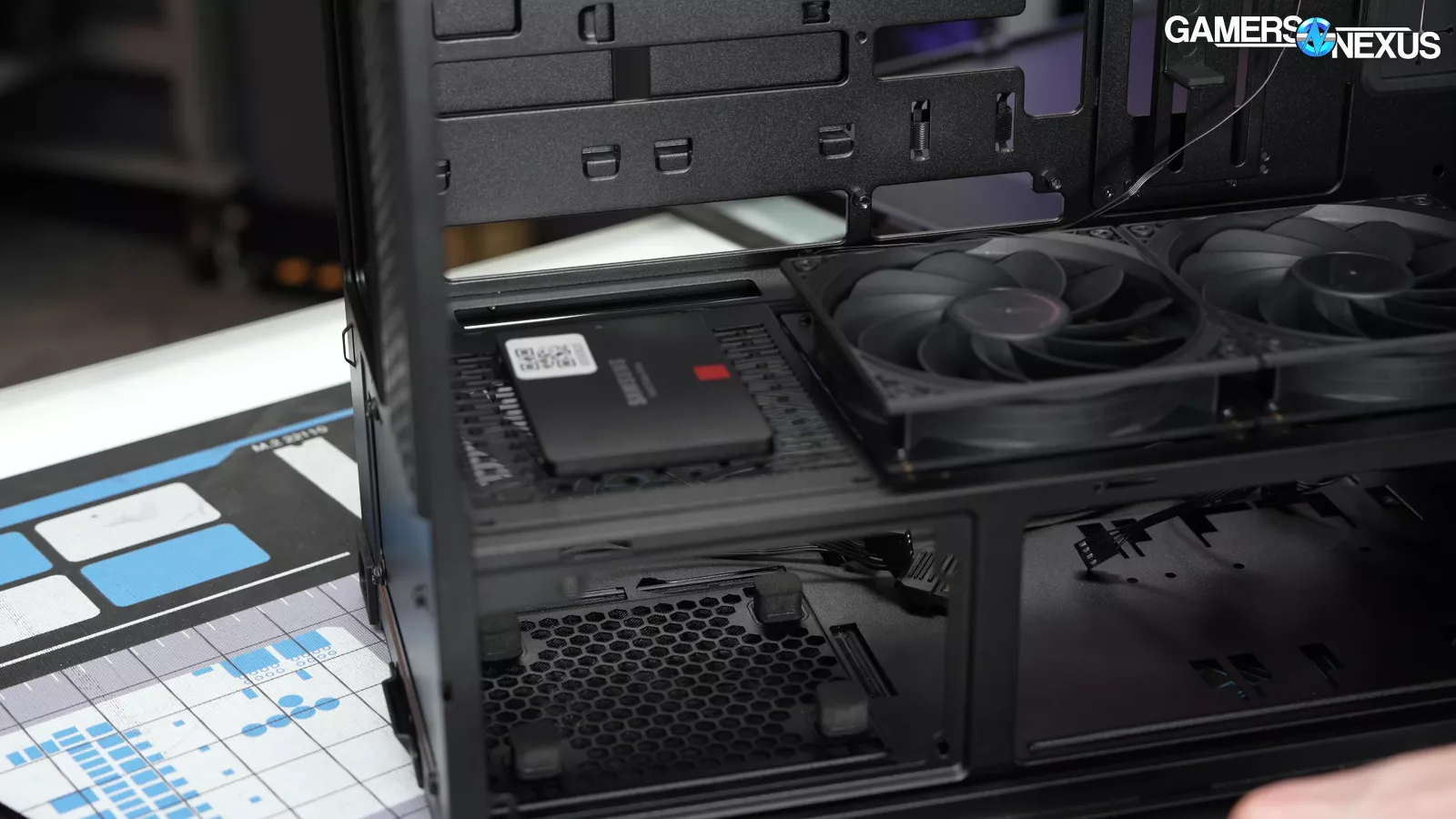 Four of the five case fans are mounted tool-lessly, and the front fans in particular can be rearranged into "CPU Mode" or "GPU Mode" with plastic spacers in between.