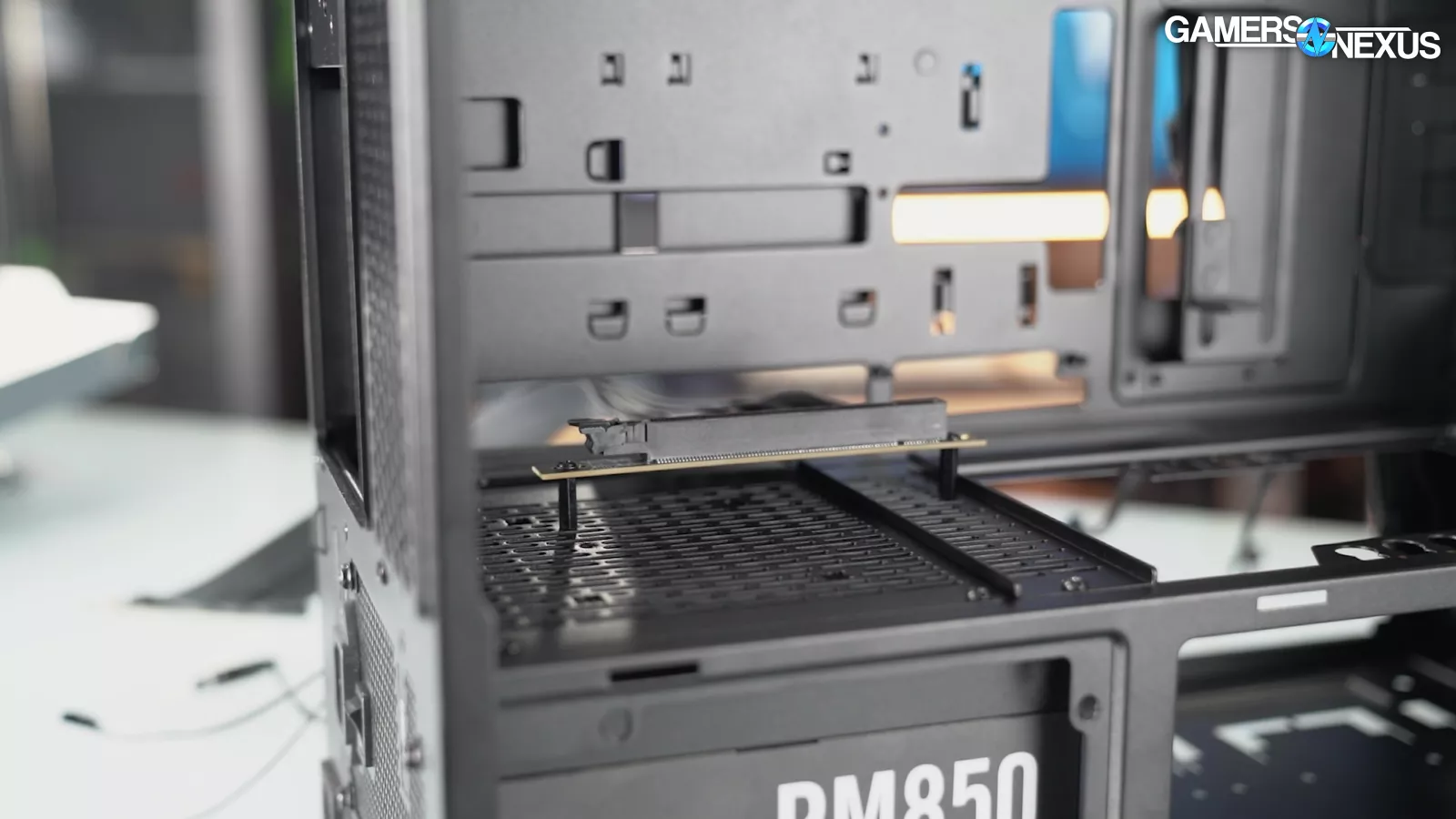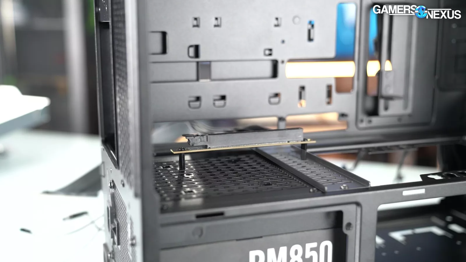 The case also has a 90-degree rotated PSU mount and an elaborate vertical GPU mount that's compatible with shroud-top fans for once, although it requires a separately-purchased riser cable to use.