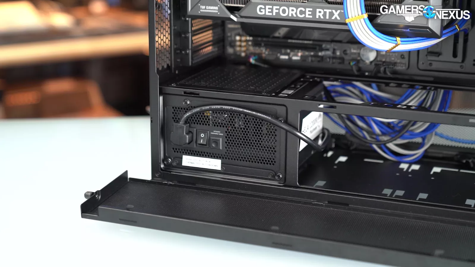 If you use one of Lian Li's Edge PSUs, it must be mounted fan-side-up and will compete with the GPU for air.