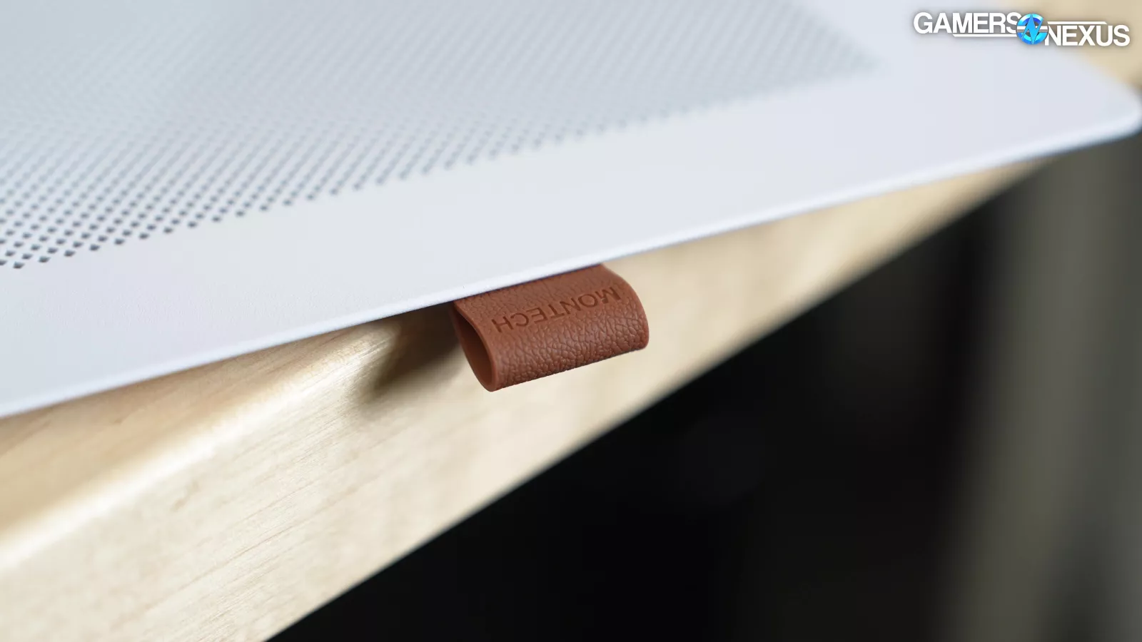 The motherboard and fans have what Montech describes as a "sink-in design," meaning that ATX or even mATX boards are surrounded by metal on all sides. As a consequence, it's difficult to reach board connections with normal motherboards (which is most of them): for example, we were forced to use the stock flat EPS12V cables for our SilverStone PSU because our custom-sleeved CableMod replacements couldn't cleanly fit. Routing the 24-pin cable required an uncomfortable bend, and fitting the USB headers into place was nearly impossible. There's no good route for the GPU power cable either, although that's a common issue with open-bottomed cases and not specific to Montech.