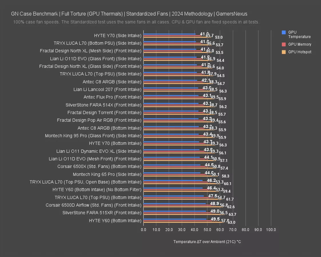 The $150 Antec C8 (read our review) is an impressive 15 degrees better than the King 65 Pro. The $80 Lancool 207 is also about 15-16 degrees better than the $100 King 65 Pro.