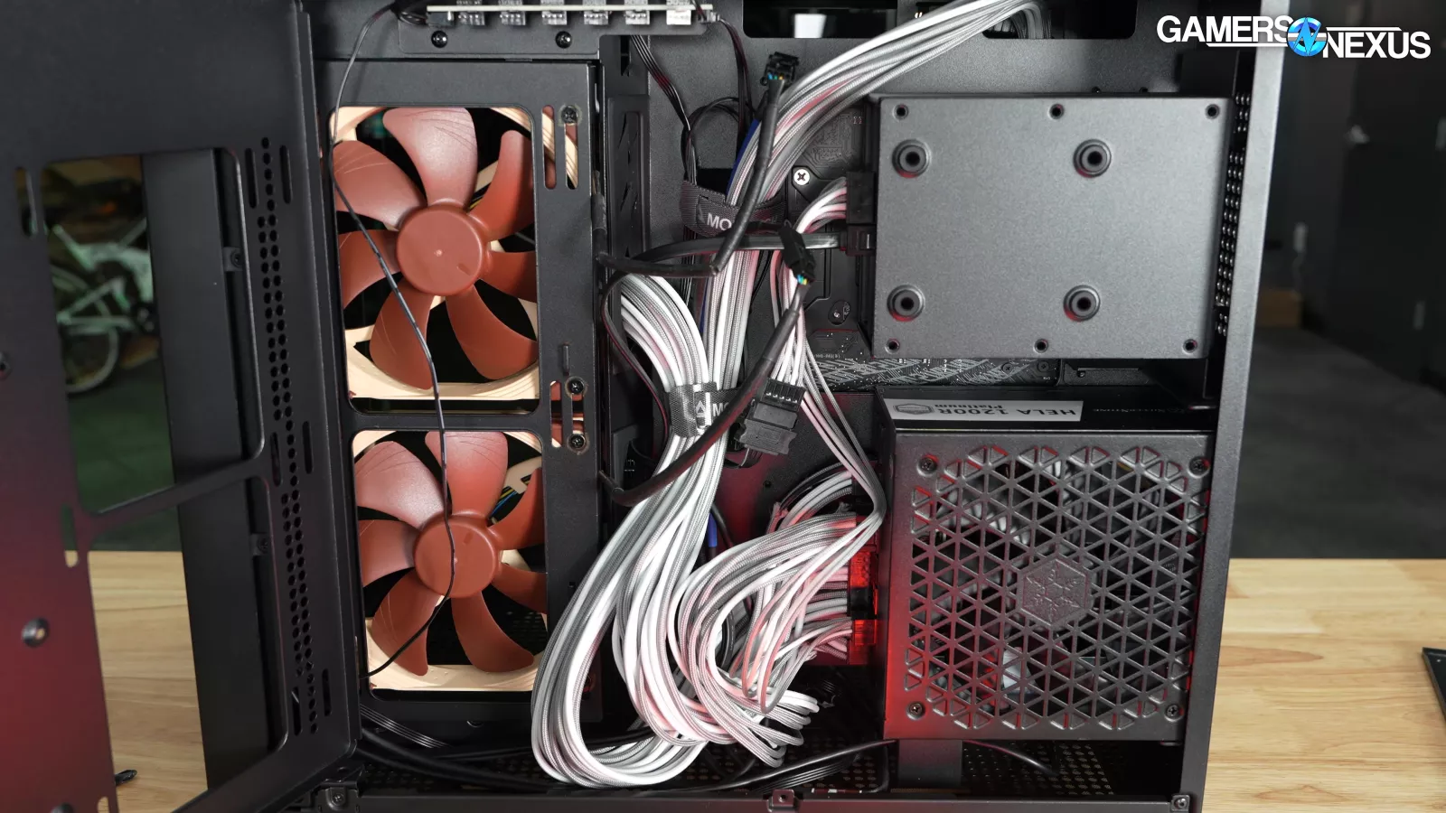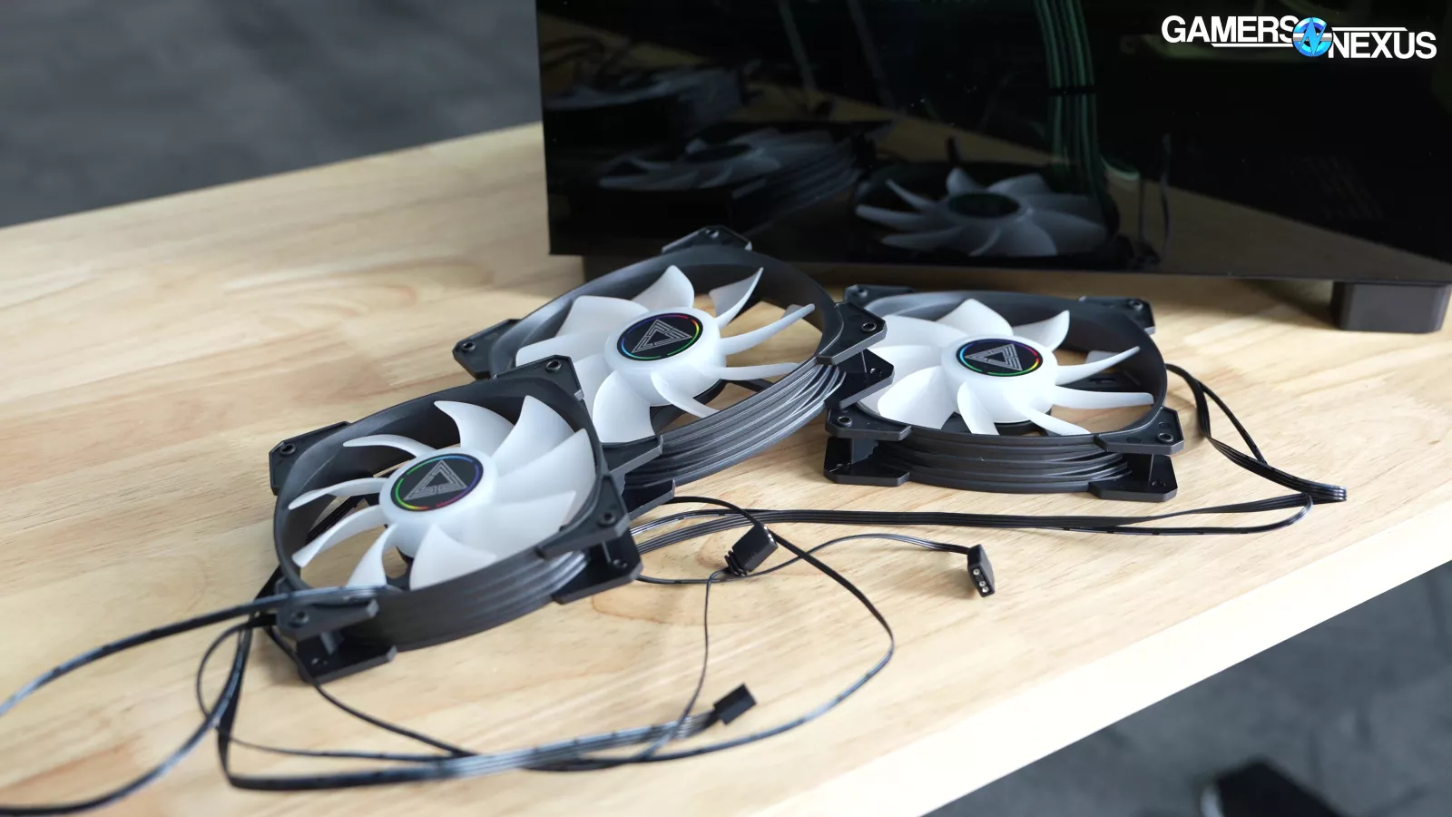 The next test is where we pull all the included fans and swap them for 3 standardized fans. Some cases are worsened by this, as we’re removing more abundant or better fans; however, this is useful for evaluating changes to the chassis structure itself.