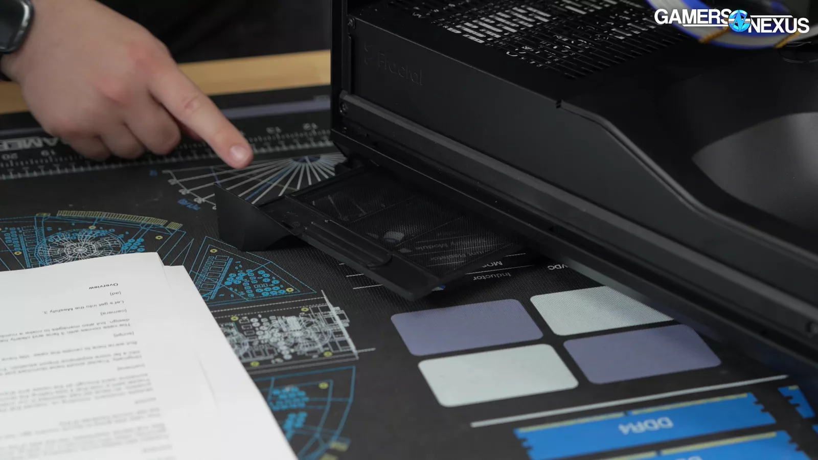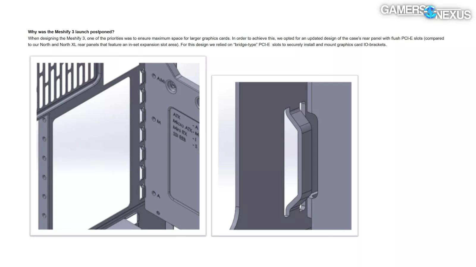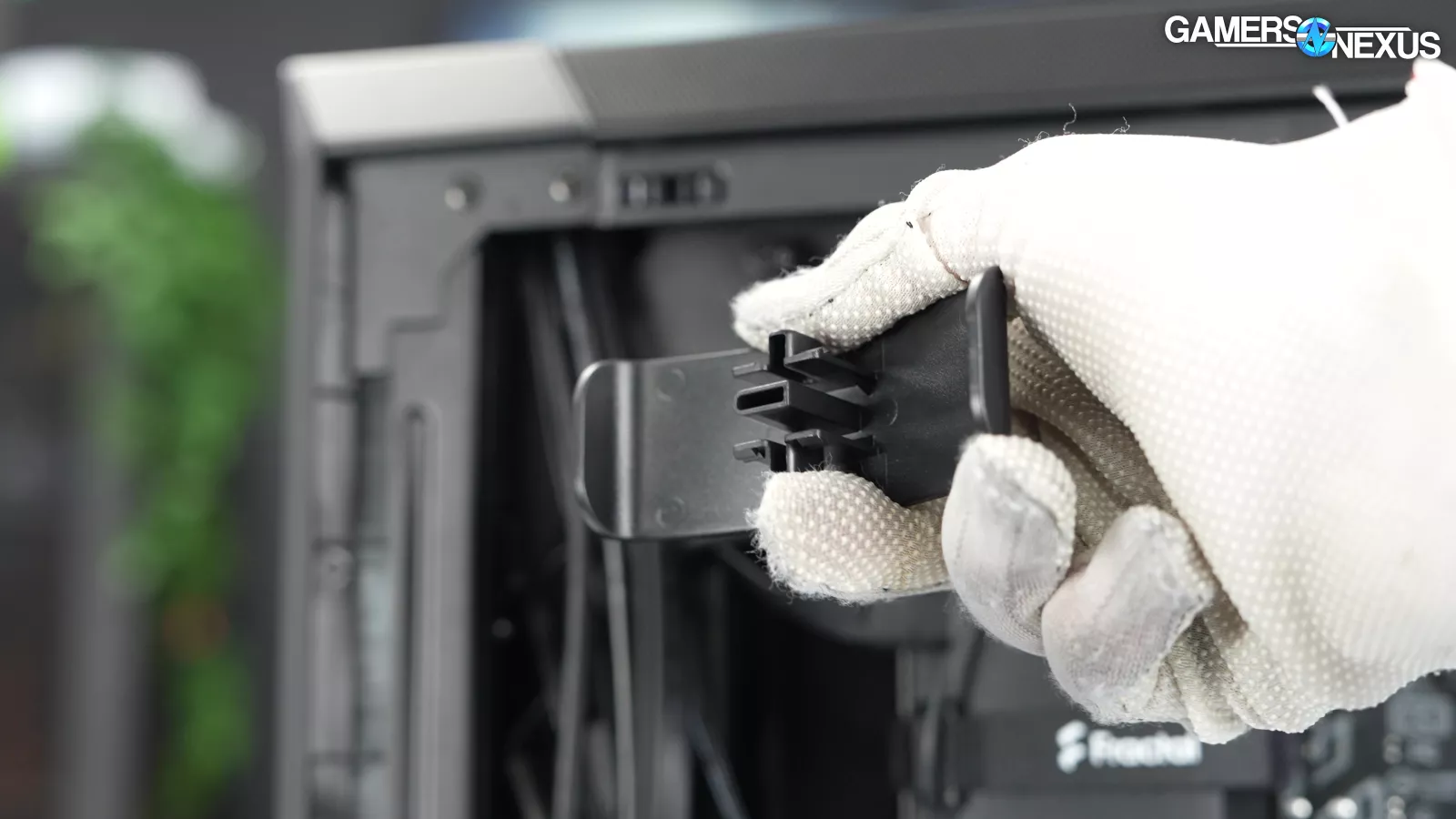 Multiple reviewers, including us, noticed that these PCIe slots were too tight for GPUs to slot properly, an issue we had recorded in our notes for the review and were about to film when Fractal sent an email that it was halting the launch. Fractal manually reworked this, meaning someone went through all the cases and shaved them down.