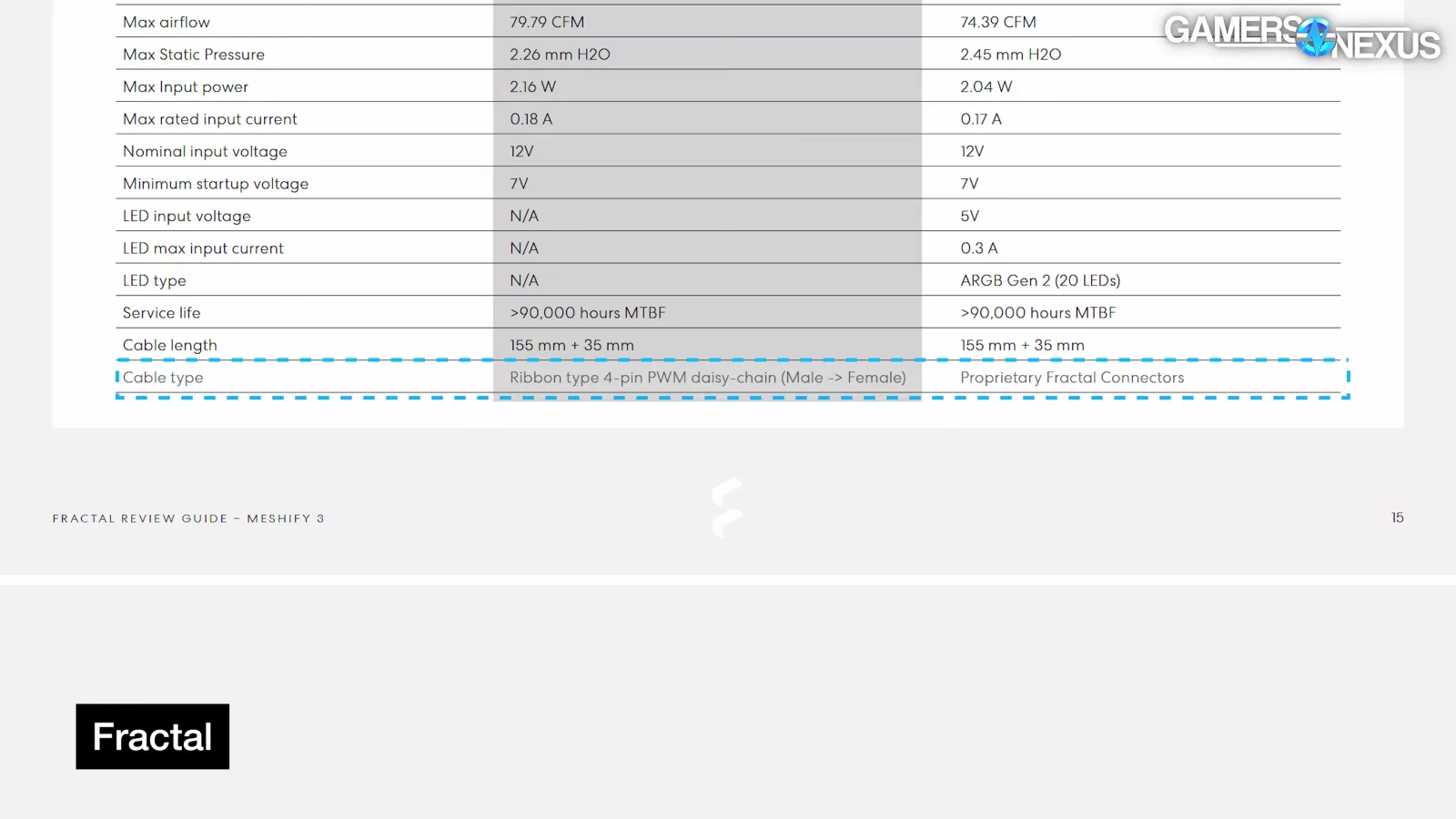 - The Meshify 3 Ambience Pro RGB has the same fans as the other RGB SKU, but they're pre-routed to Fractal's Adjust Pro hub. A "legacy splitter" cable is included for OUTput so that regular ARGB devices can be daisy-chained onto Fractal's devices, but the INput adapter cable from the Meshify 3 RGB is not included. In other words, if you get the Ambience Pro RGB, you're using the hub (or waiting for Fractal to sell an adapter cable separately)
