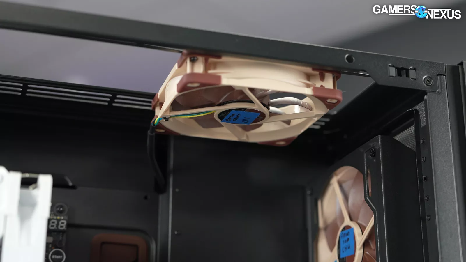 Second, a test with one of the shroud-top fans moved to the top of the case as intake in front of the CPU cooler. Third, tests with the original Flux Pro fans arranged as they were in the original review. These should theoretically match the original Flux Pro results, but since there was some variance, we'll use the Noctua Edition + Flux Pro fans as the point of comparison.